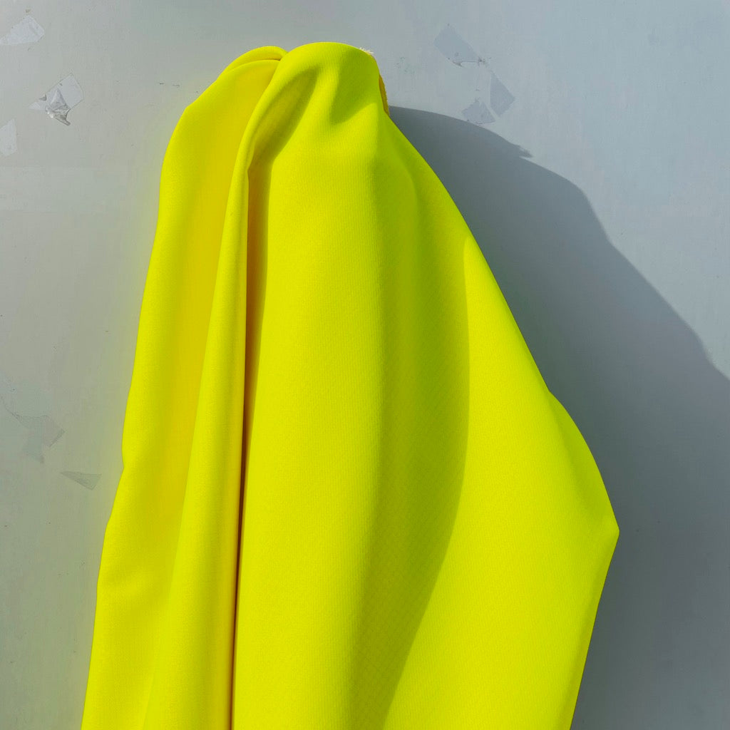 Ein fetziges neongelbes robustes Gewebe mit viel Stand, einer hohen Strapazierfähigkeit und hoher Reißfestigkeit. Hohe Langlebigkeit in einer topmodischen Farbe für alle, die es bunt und knallig in neon lieben.