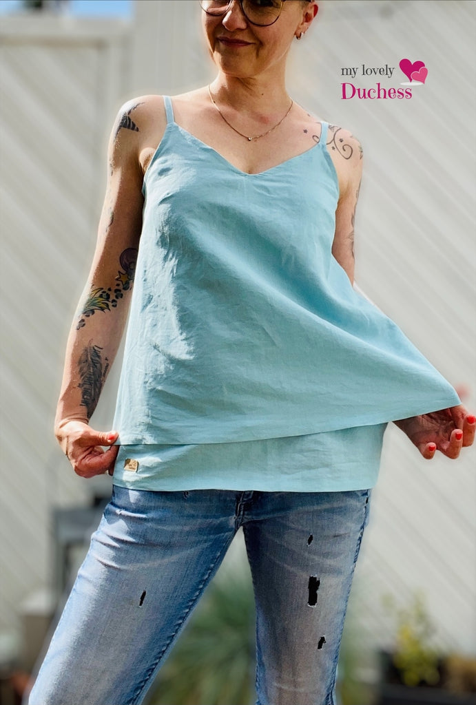 Diese herrlich leichte Leinen-/ Baumwollqualität  in sommerlicher Optik in einem frischen Türkis eignet sich hervorragend für luftige Kleider, Hosen, Blusen uvm. Dieser Baumwollleinen erzeugt ein angenehm kühlendes Tragegefühl auf der Haut, zudem ist dieser tolle Stoff äußerst robust! Bei My_lovely_Duchess und Septemberfaden könnt ihr tolle Designbeispiele bewundern.