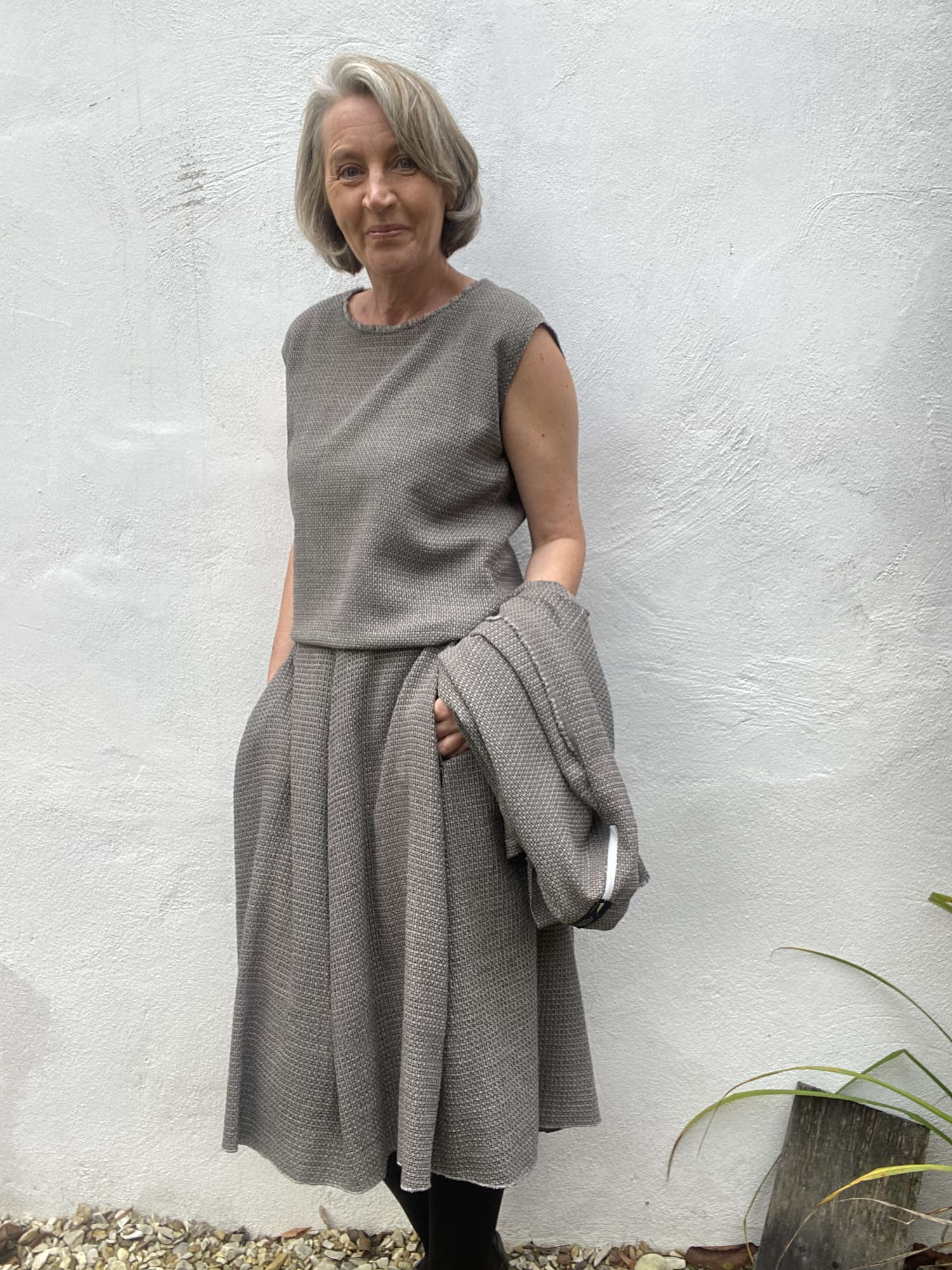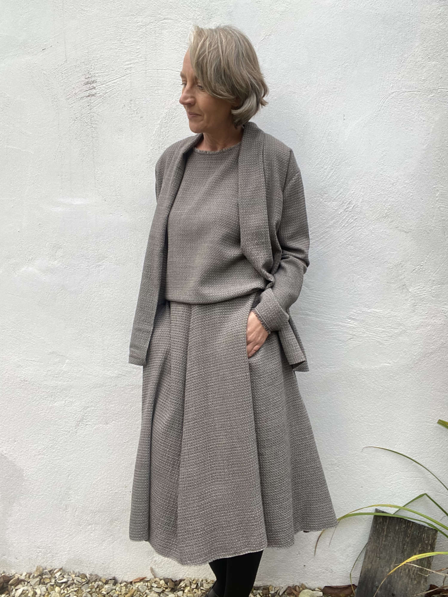 Lesrobesdesimone hat genäht wie eine Weltmeisterin! Gleich vier wunderschöne Kleidungsstücke hat sie sich aus diesem feinen Stöffchen in der Farbe 'Beige' gezaubert! Das Twinset 'Faye_B' von B-Patterns passt super zum 'Tulip Skirt' von The Assembly Line! Aber auch mit einer Hose lässt es sich super kombinieren! Außerdem hat sie sich noch das Blusenshirt 'Kim_B', ebenfalls von B-Patterns, geschneidert