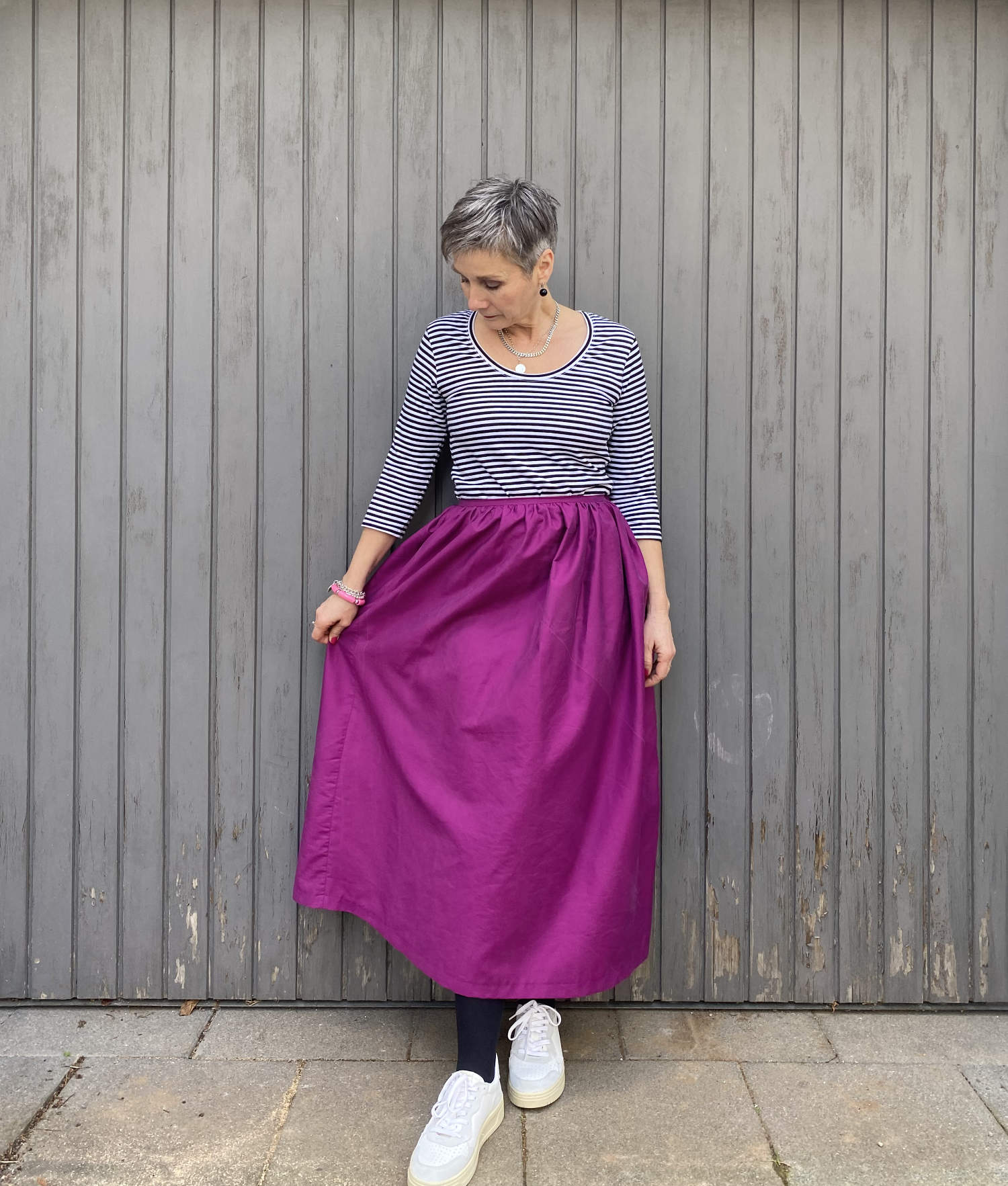Bei Ganzmeinding könnt ihr den grandiosen Rock 'Jemma' aus der Fibremood bestaunen, den sie lässig mit Sneakern kombiniert.