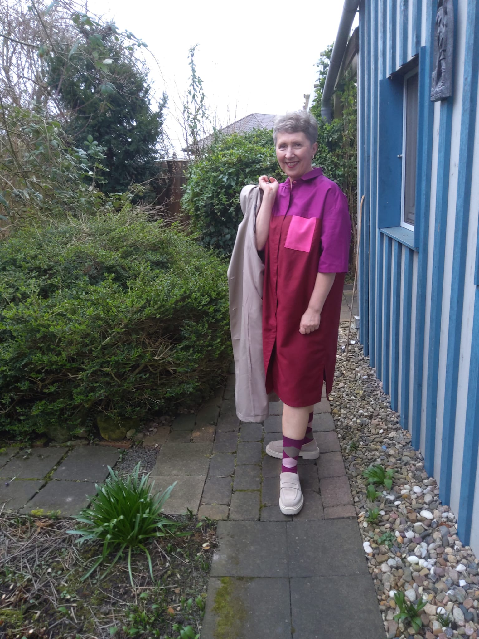 Aggiedz liebt es bunt und deshalb wurden in ihrem neuen Kleid aus der Burda 03/24 Modell 122 gleich zwei Farben unserer Cool-Tencel-Kollektion verarbeitet! 'Sangria' und 'Wilder Klee' matchen toll und das Color-Blocking.