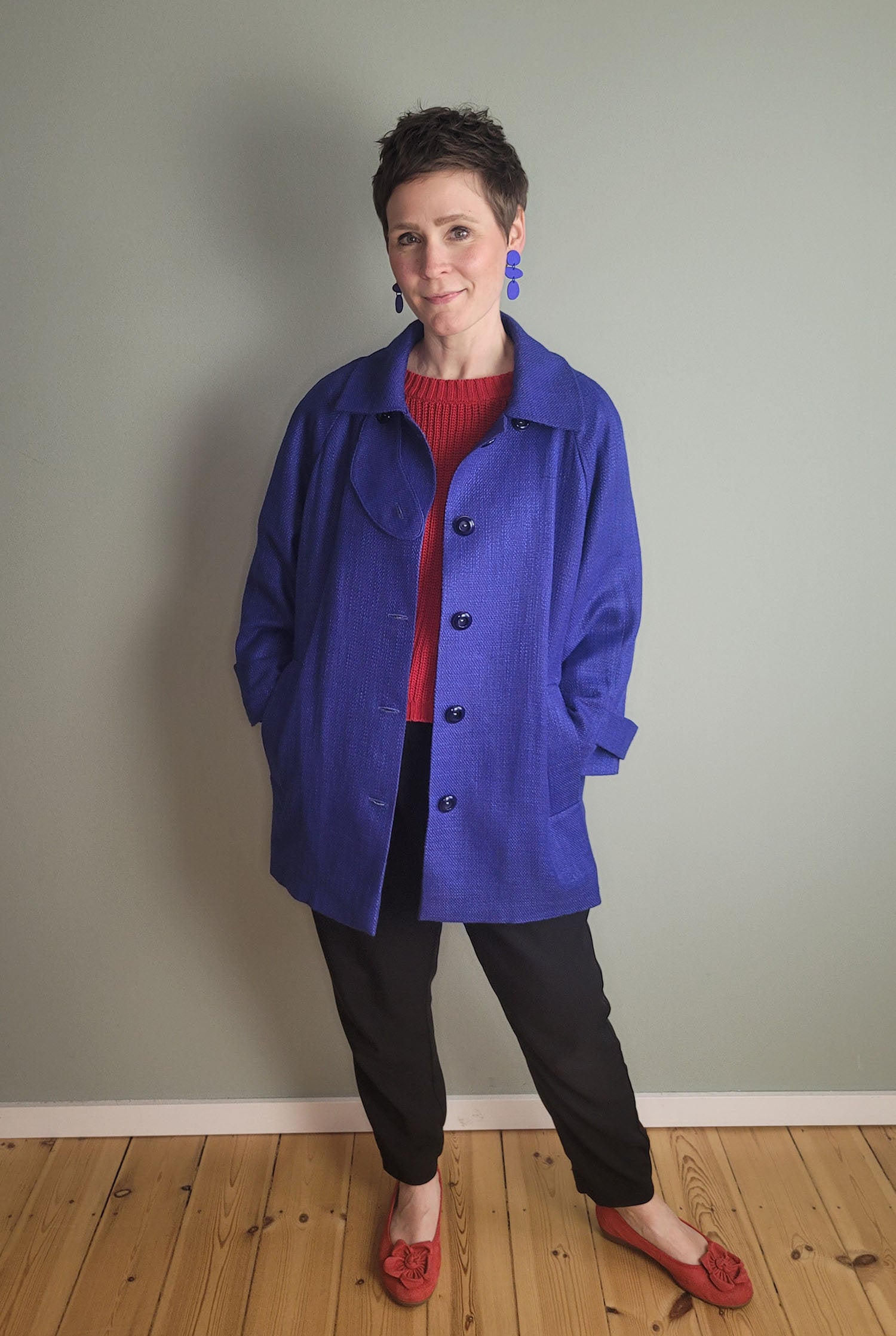 adinskausminks hat sich die Raglanjacke No88 von Trendschnitt aus unserem Chanelstoff in knalligem Royalblau geschneidert!