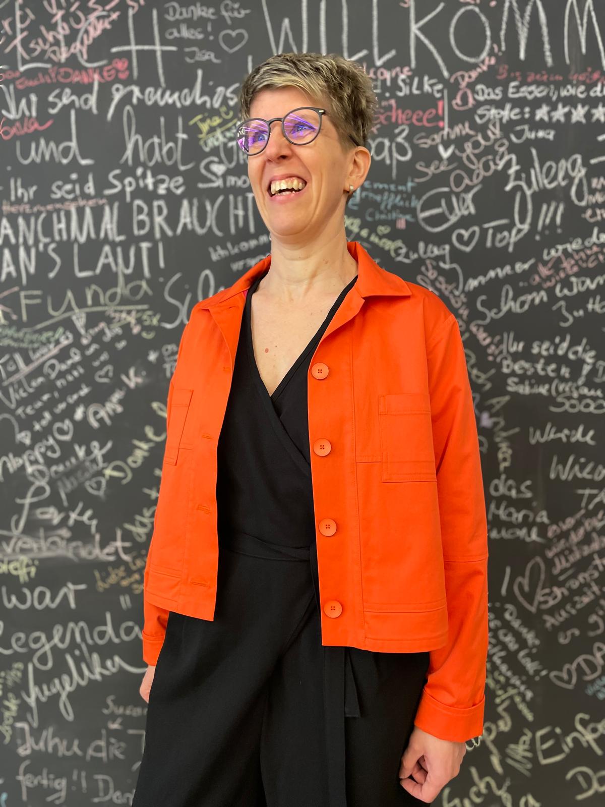 _Anja.78 hat den knalligen Baumwollstoff zu einem Jacke von Chalkandknotch verarbeitet. Modell CNDEN