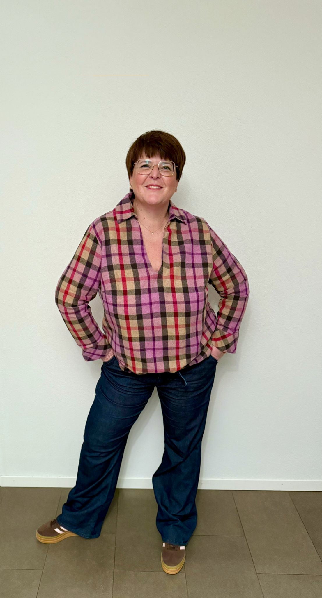 Evelyne hat sich aus unserem leichten und trendigen Karo die Bluse Flora von Lillesol & Pelle gezaubert! Ein dezenter Schnitt der durch unseren angesagten feinen Karoflanell zum absoluten Hingucker wird!
