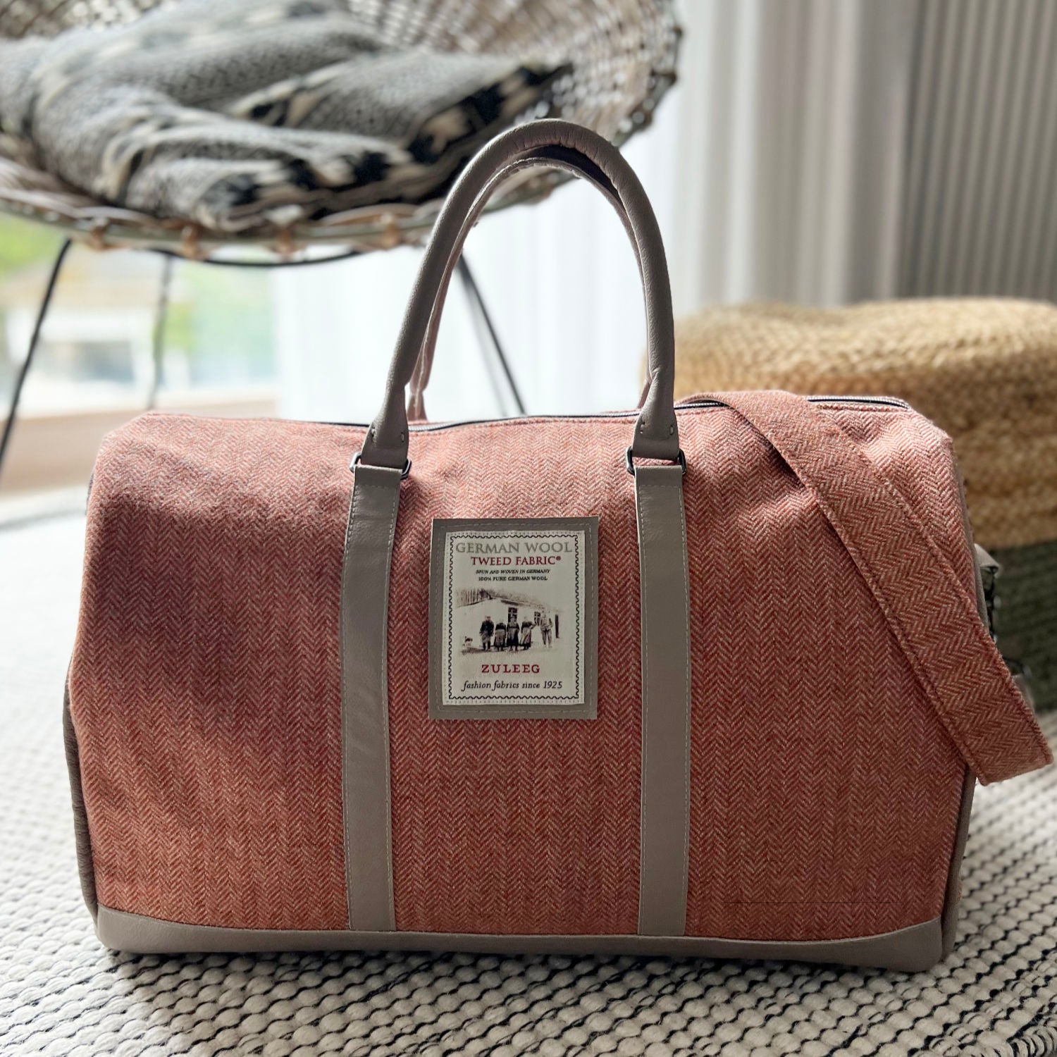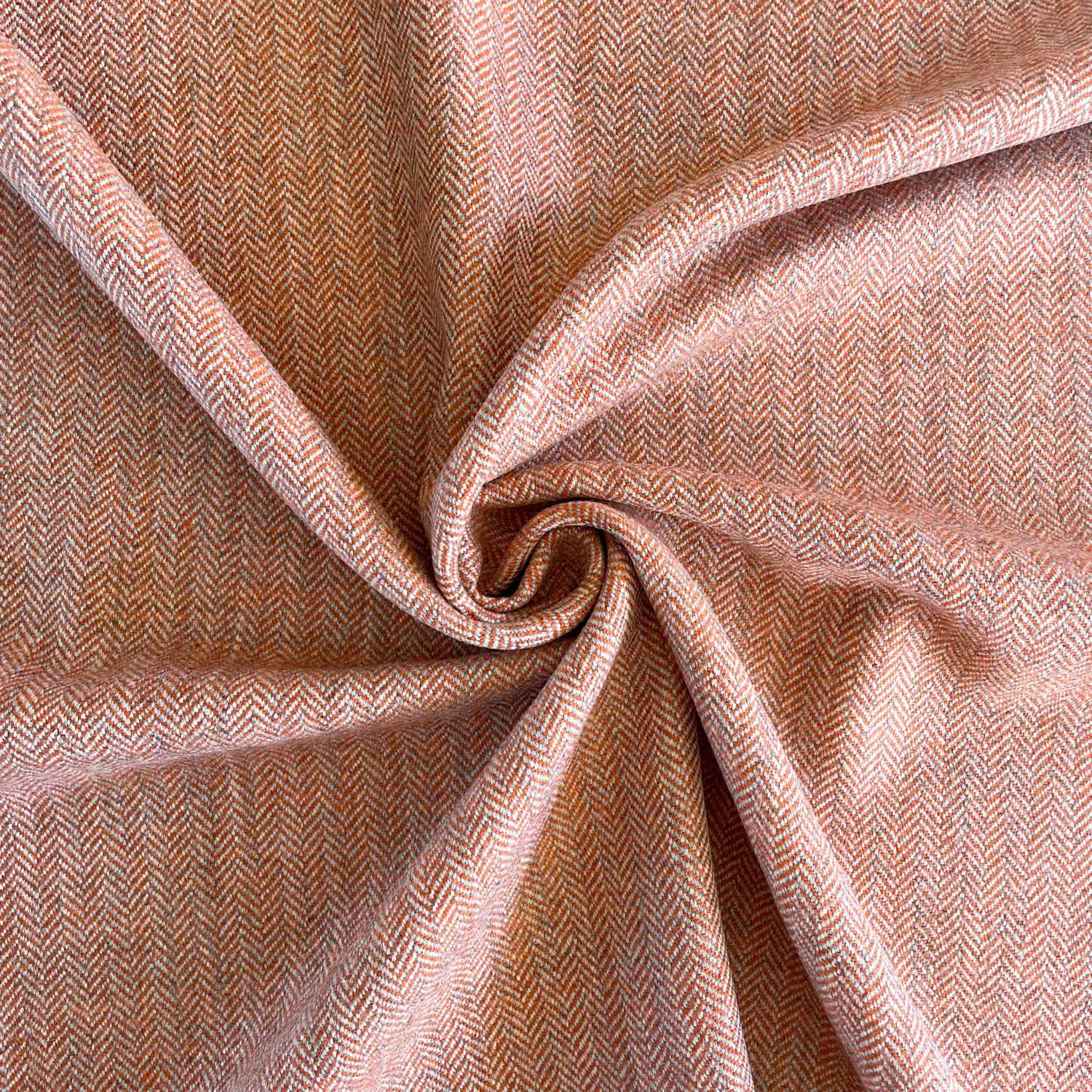 Fischgrat, der Tweed-Klassiker in Orange/Grau für Mäntel, Jacken, Blazer, Caps, Hüte, Ponchos oder Tuniken. Selbst eine Tasche ist ein echter Hingucker, wie man an unserem Tweedender sieht!