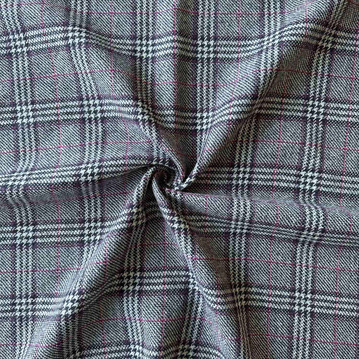 Ein karierter modischer Tweed-Klassiker in Weiß/Blau mit pinken und lilanem Überkaro. Für Mäntel, Jacken, Blazer, Caps, Hüte, Ponchos oder auch Winterröcke.