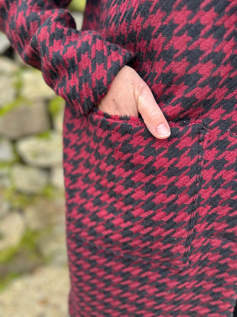 Anja hat den German Tweed in klassischem Hahnentrittmuster in Schwarz/Rot zu einem Mantel nach dem Schnittmuster 'Mika' von @fadenkäfer verarbeitet!