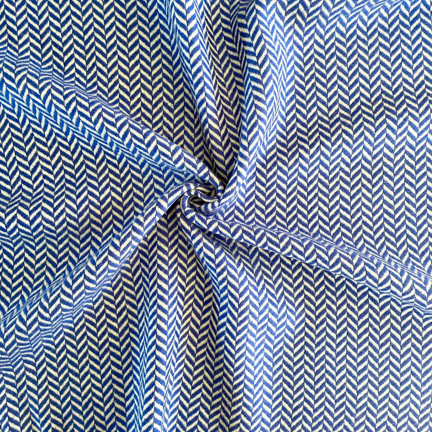 Unser Maxi Fischgrät ist die stylische Neuinterpretation vom Klassiker! Die Farbkombi aus Weiß/Blau lässt das ausgefallene plakative Muster besonders herausstechen und macht es somit zu einem absoluten Hingucker. Die grobe Fischgrätstruktur eignet sich besonders für Mäntel, Jacken, Westen, Ponchos und Accessoires wie Taschen oder Mützen!