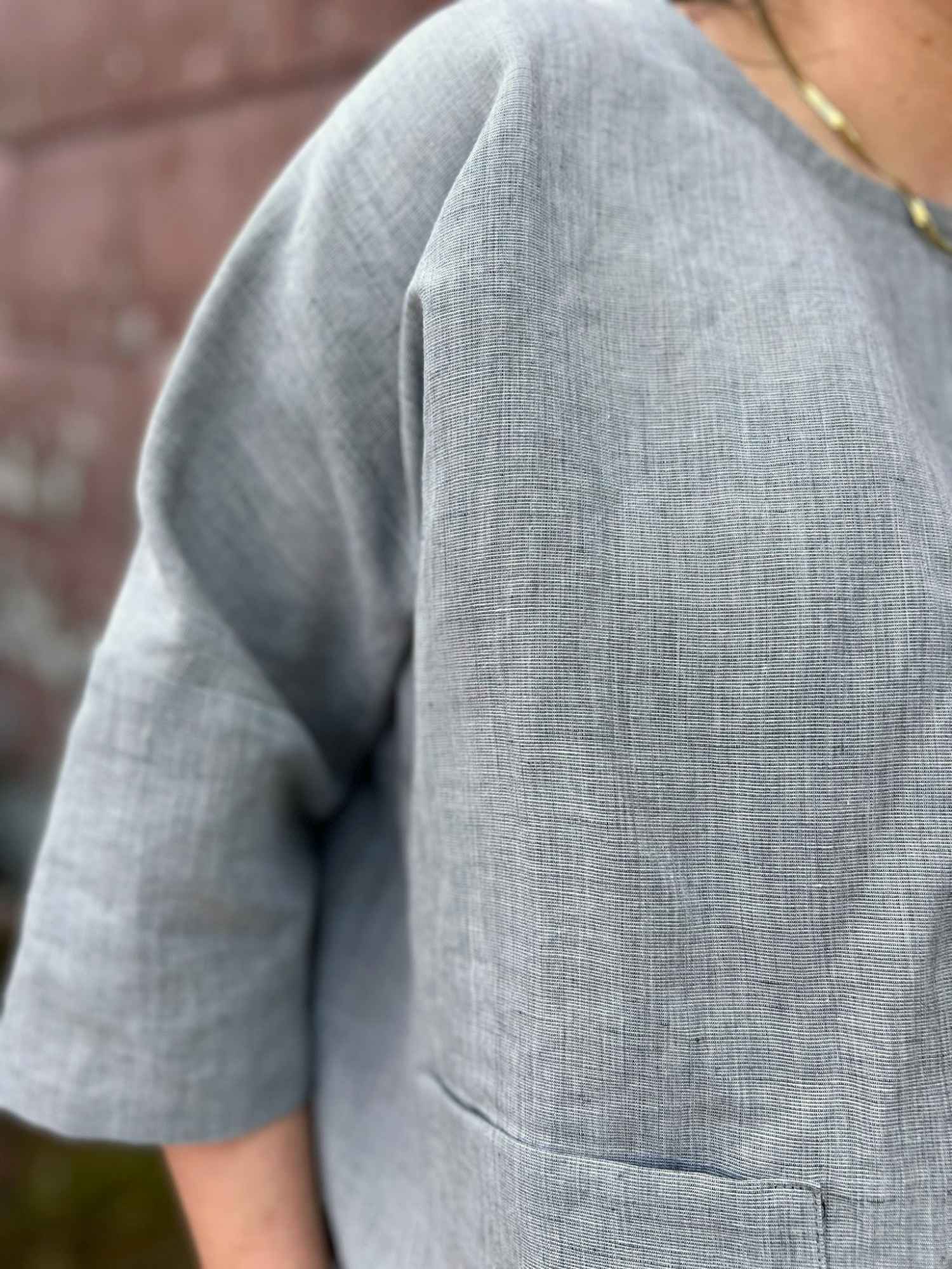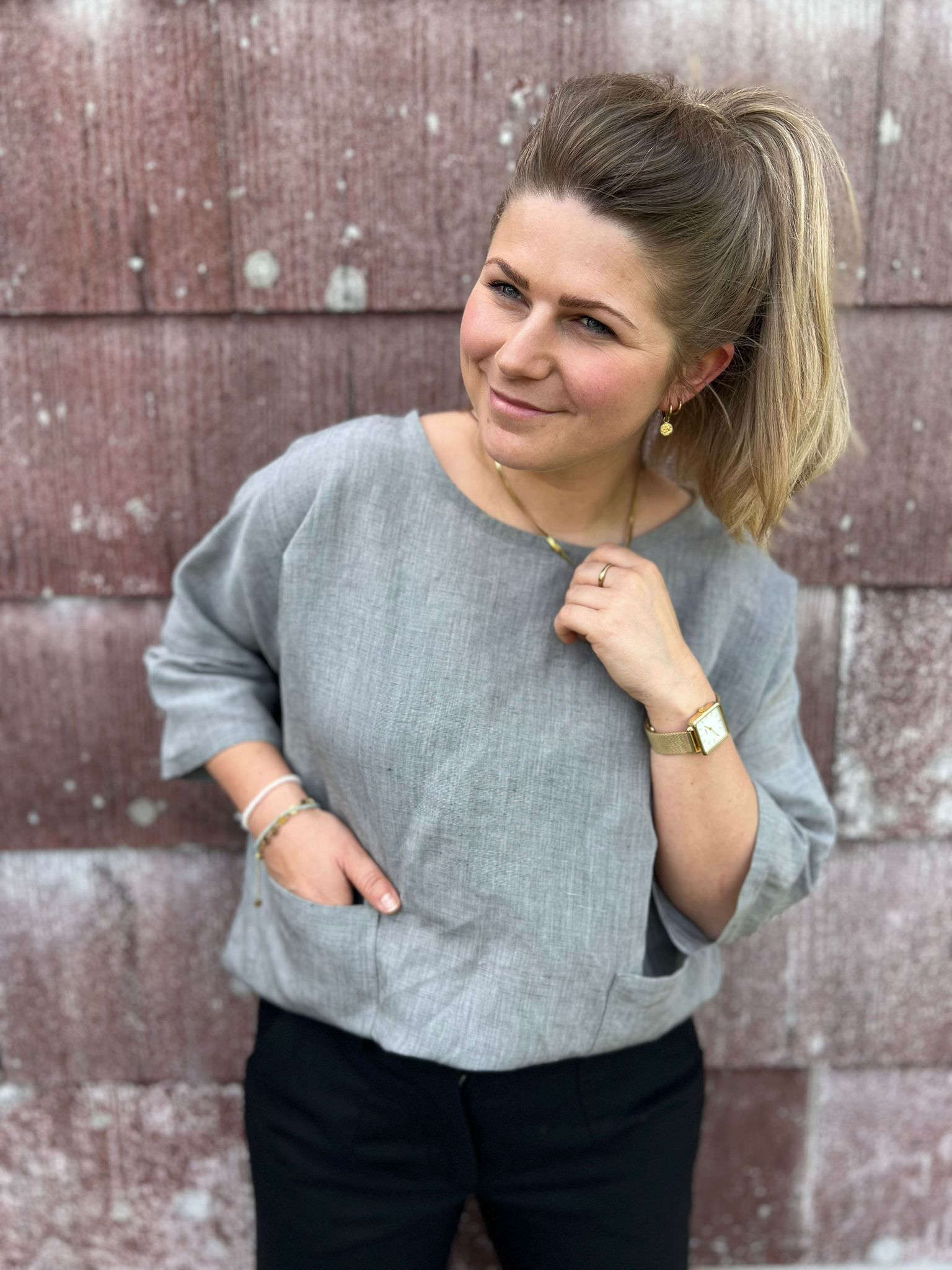 Ines hat sich aus dem Farbton "Silver Cloud" das "Women's Shift Top" von Wiksten geschneidert und freut sich das zeitlose Modepiece aus wertigem Leinenmix im Sommer auszuführen!