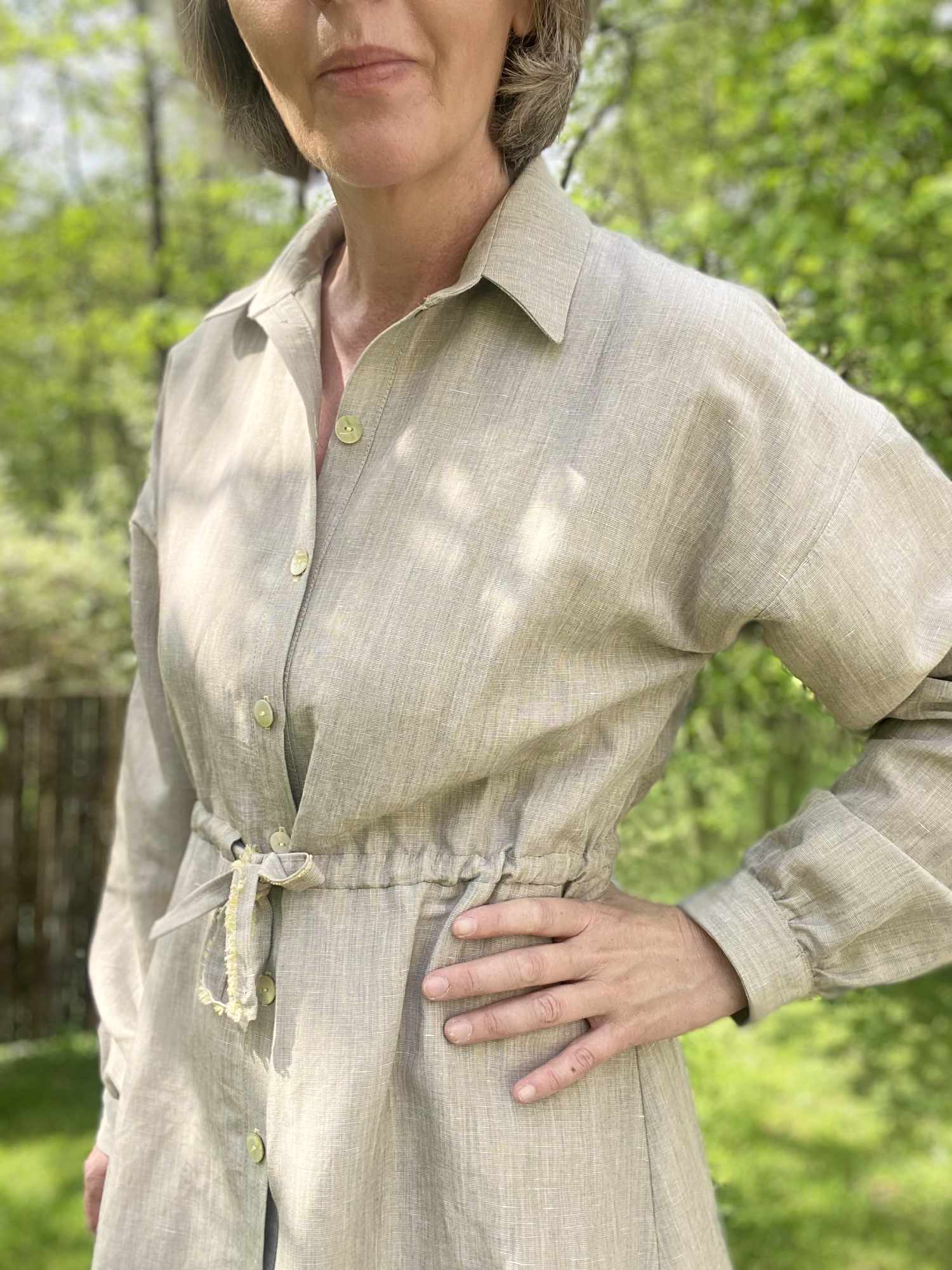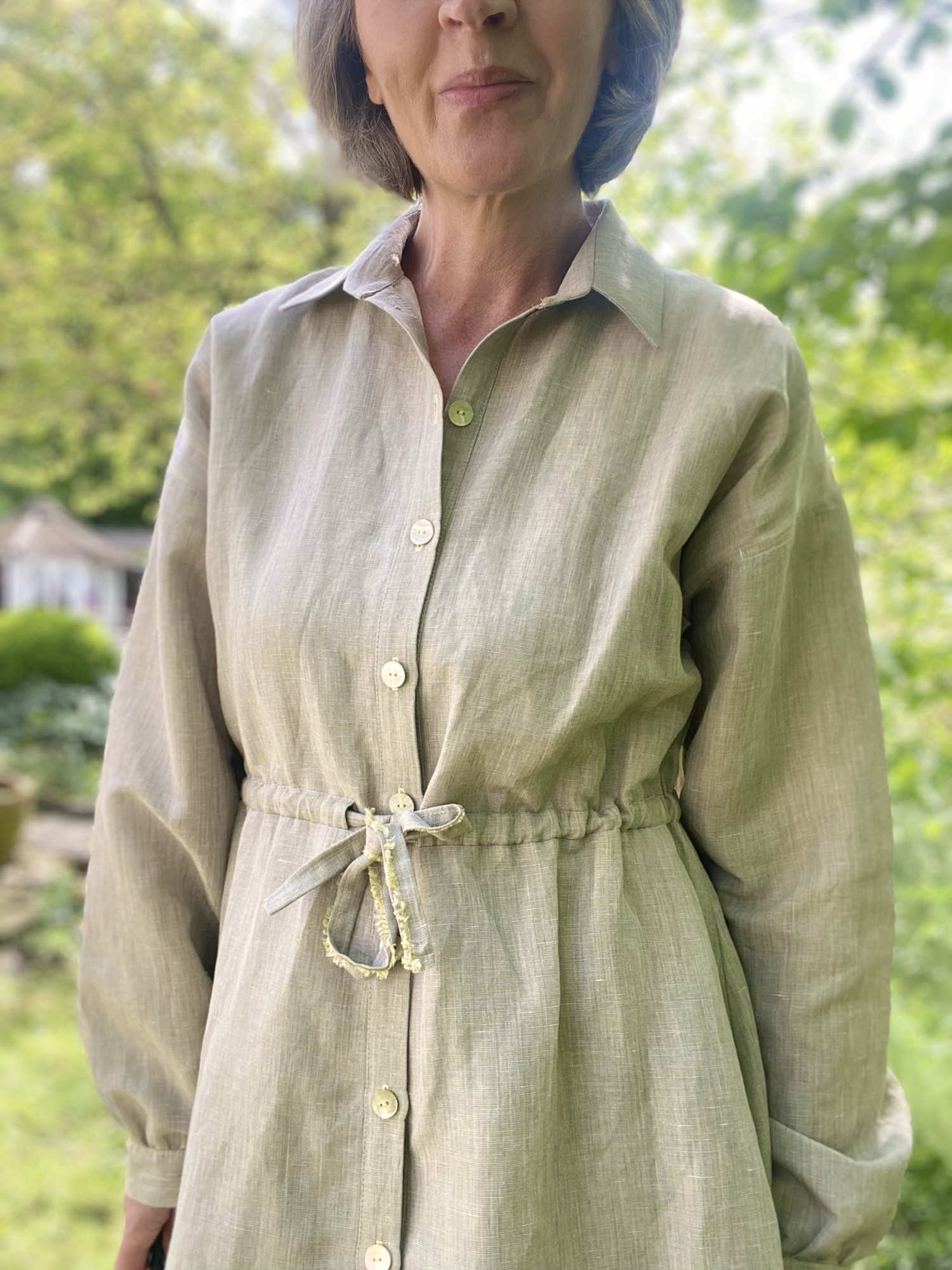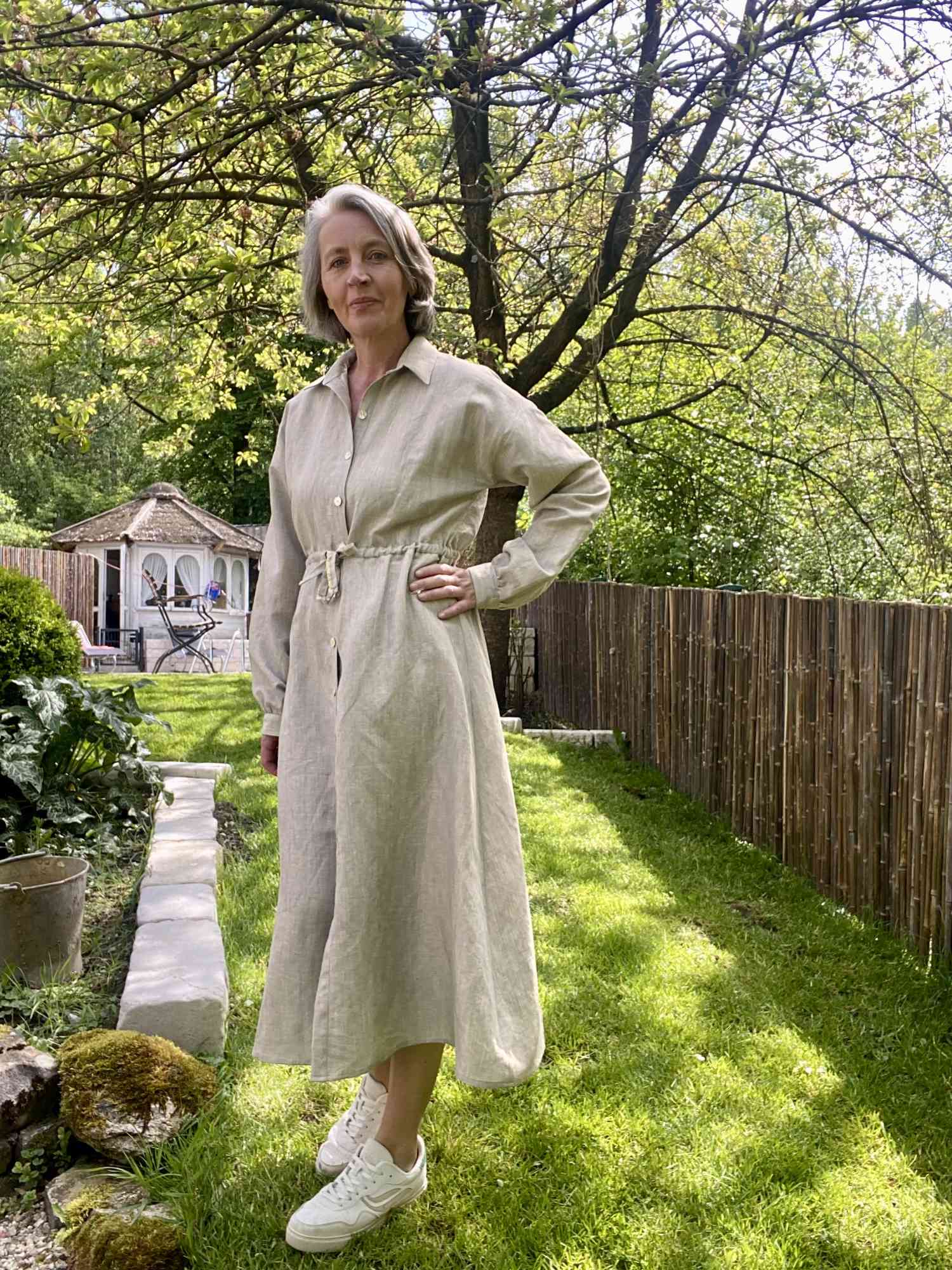 Lesrobesdesimone hat sich für den sommerlichen Farbton "Vanilla Icecream" entschieden und sich daraus das Hemdblusenkleid 'Lou' von Bara Studio genäht.