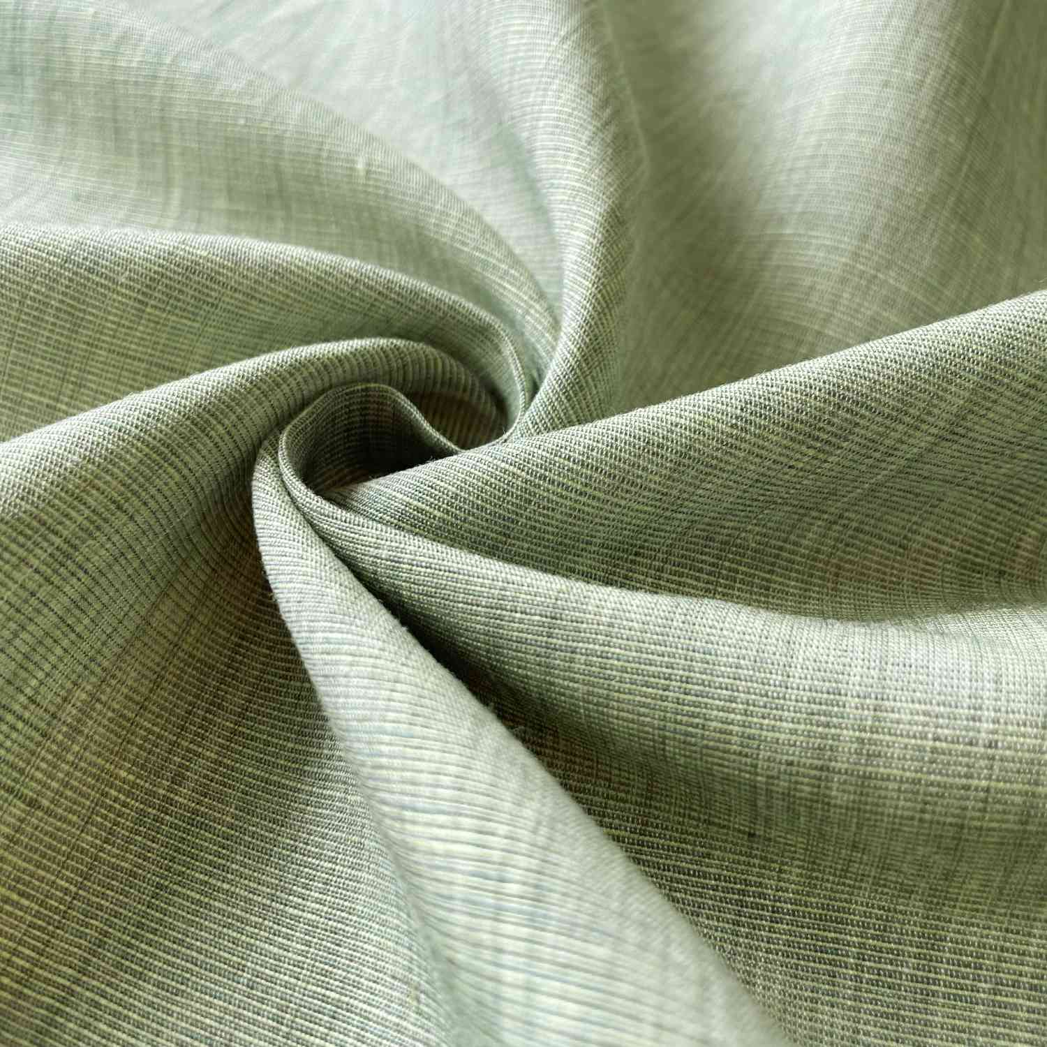 Diese leichte Sommerware in der trendigen Farbe WILD LEMON ist eine Kombination aus Khaki, Gelbgrün und Grau und erhält durch die entsprechende Herstellung eine pastellig grüne Chambrayoptik.