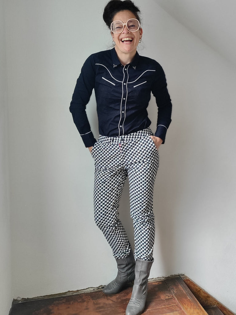 Schnapp Dir diesen pflegeleichten und strapazierfähigen Fabric mit einem angesagten Hahnentritt - Print in schwarz/weiß und näh Dir dein perfektes Business-Outfit!
