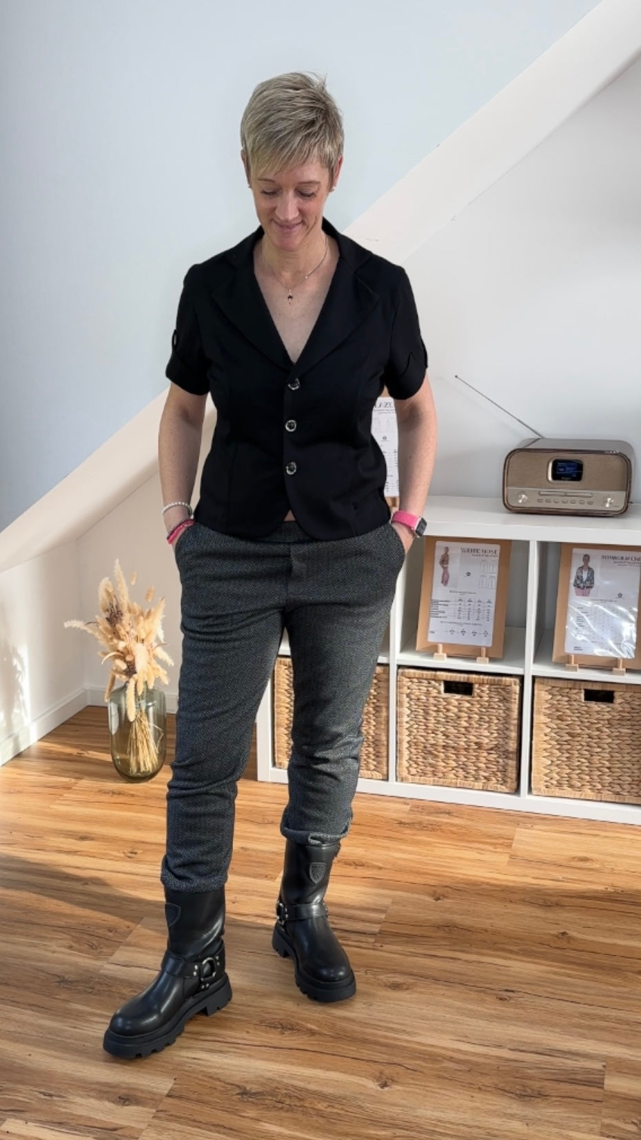 Nina von fashion_DIY.de hat unseren Bonded Doubleface als ihre 'Schmale Hose' und ihren 'Normaler Blazer' verarbeitet! Entschieden hat sie sich für das Fischgrätdesign in Silber für den bequemen Hosenschnitt und den Hahnentritt in Silber für ihren Blazer! Entstanden sind zwei Kleidungsstücke, die sowohl edel als auch lässig kombiniert werden können und somit für viele Anlässe passend sind!