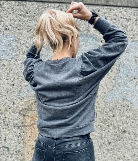 Mit diesem neuesten Sweatshirt #FibreMoodLeona mit gerüschten Einsatzstücken und gekräuselten Ärmeln bist du mit Frau Poorthuis ganz schnell back in the 80s!