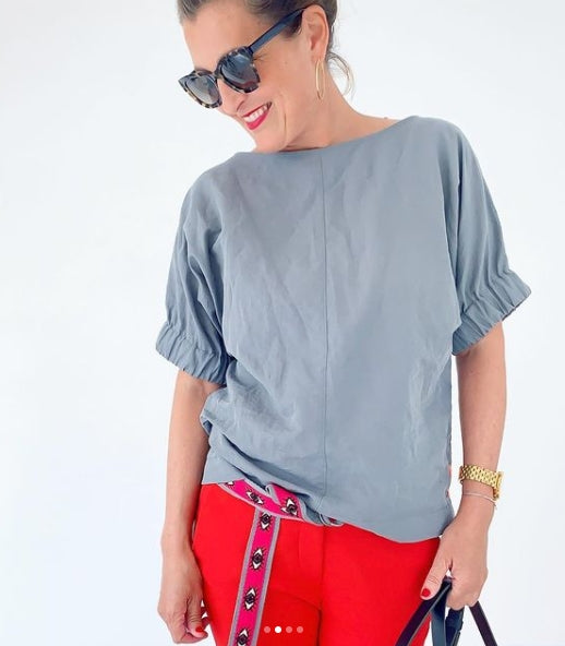 Diese herrlich leichte Leinen-/ Baumwollqualität in sommerlicher Optik in einem modischen Grau eignet sich hervorragend für luftige Kleider, Hosen, Blusen uvm. Der stylische Baumwollleinen erzeugt auch bei hohen Temperaturen ein angenehm kühlendes Tragegefühl auf der Haut, zudem ist dieser tolle Stoff äußerst robust! Bei Miss Elbneedle und Schneiderherz sowie Mo.s.fab seht ihr tolle Designbeispiele! Und Anlukaa ist immer noch total begeistert von ihrem sommerlichen Cufftop!