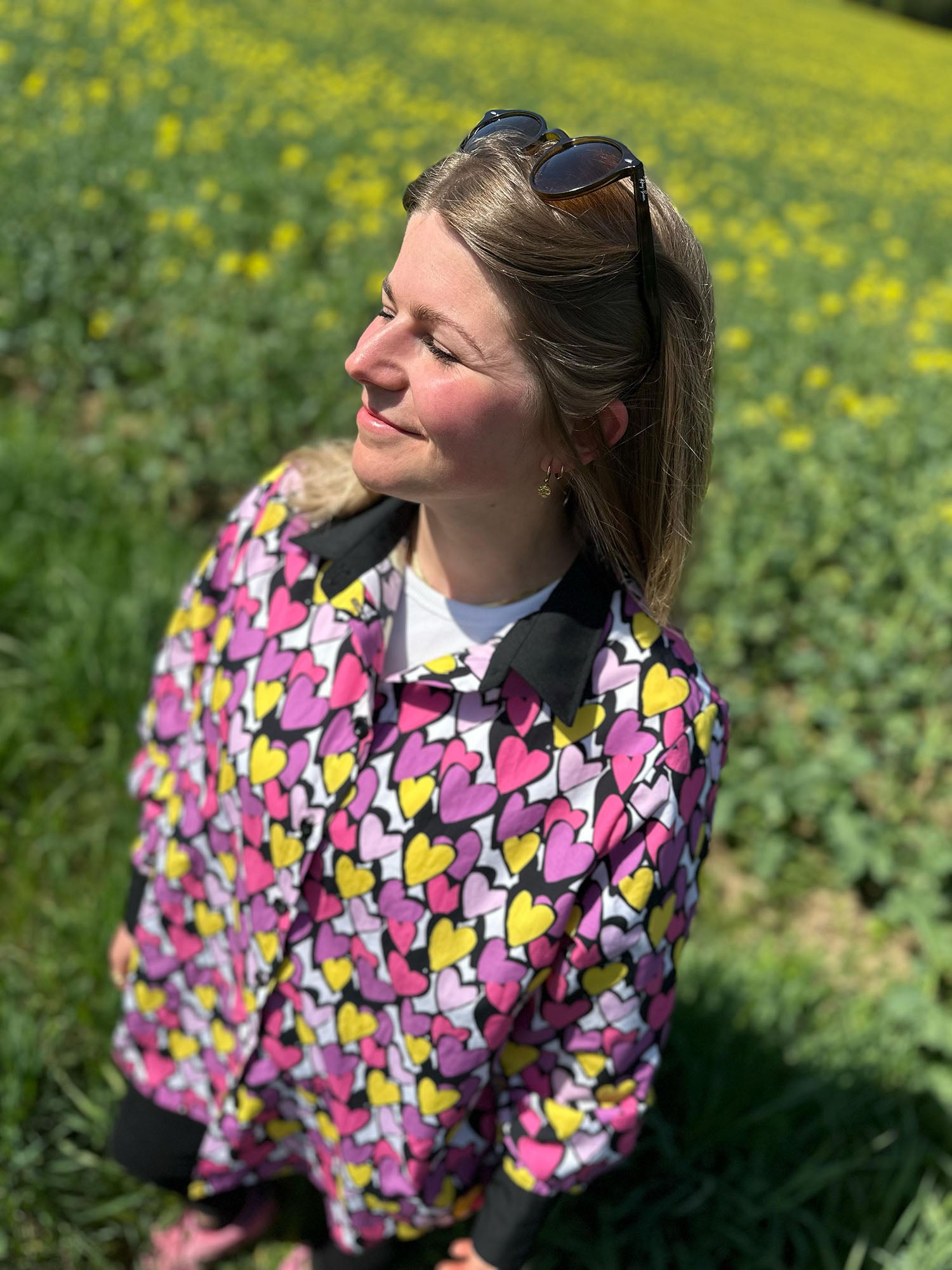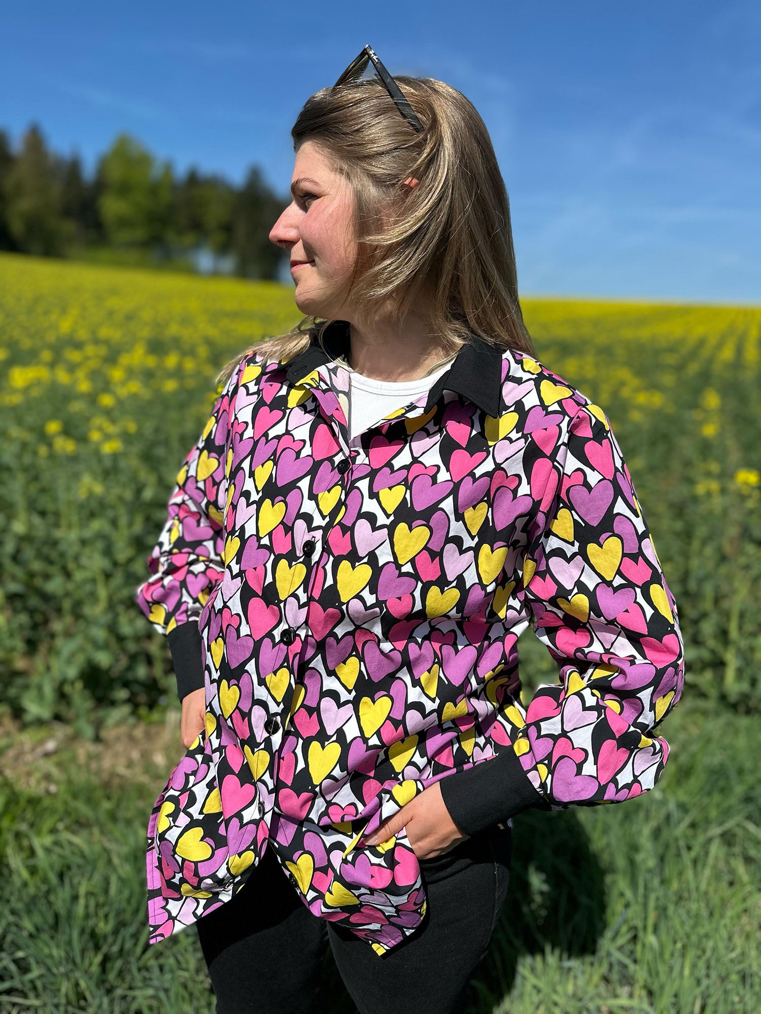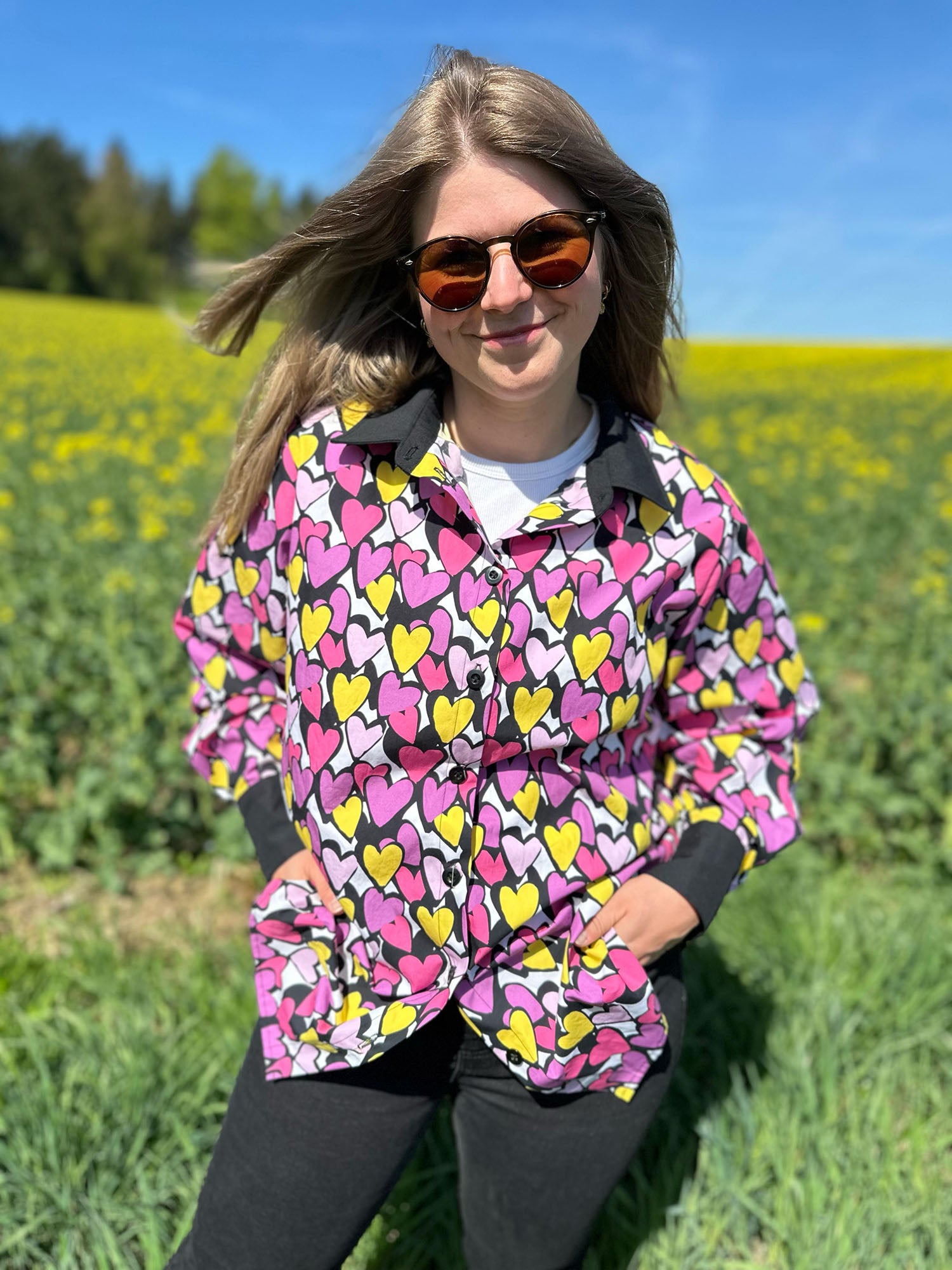 Ines hat sich gleich in die Herzchen von PINK HEARTBEATS verguckt und sich daraus die klassische Oversize Bluse Olivia von bara-studio genäht und nun überlegt sie, ob es vielleicht doch ihr Muttertagsgeschenk an die liebe Mama wird.