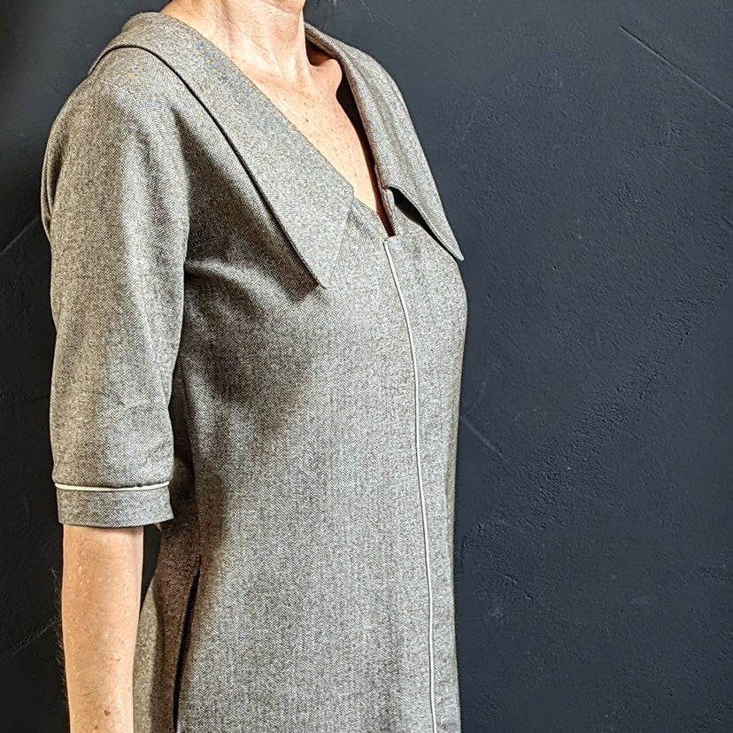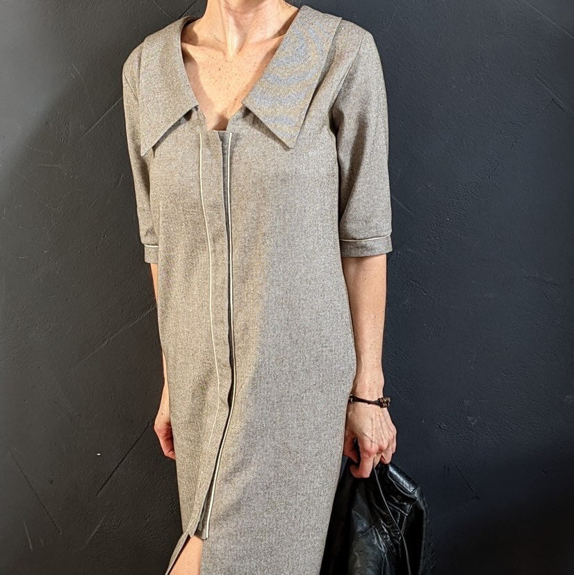 Sehr hochwertige flanellige Fischgratstruktur mit natürlichem Look und wunderschöner weicher Haptik und edlem Lüster! Die modische Zweifarbigkeit von graustichigem Oliv und Écru wirkt stylisch, frisch und smart und ist traumhaft zu Kombinieren. Der Fischgrat ist 0,6 cm breit. Ein smartes Businesskleid könnt ihr bei @einfachkarl_original bestaunen!