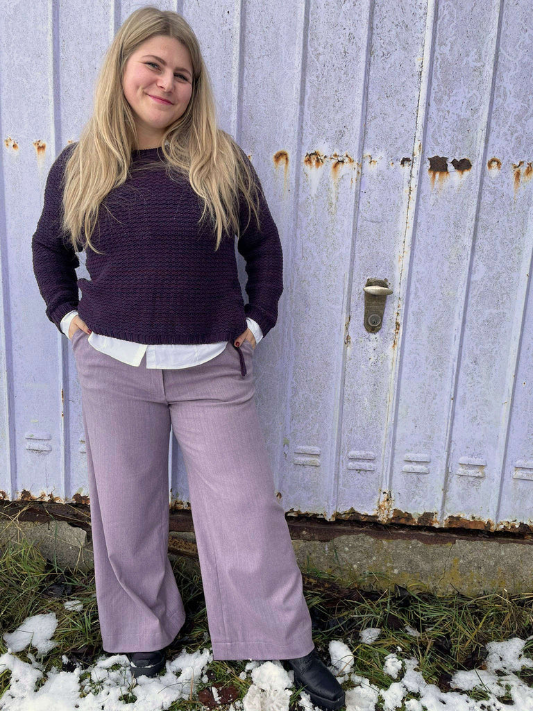 Unsere Ines hat sich bei diesem Traumstöffchen schnell für eine Hose entschieden und hat den FROSTY VIOLET in das neue zeitlose Hosenschnittmuster 'Malene' von @sovielbunt verwandelt. Eine Mode-Piece mit echtem Wohlfühlfaktor!