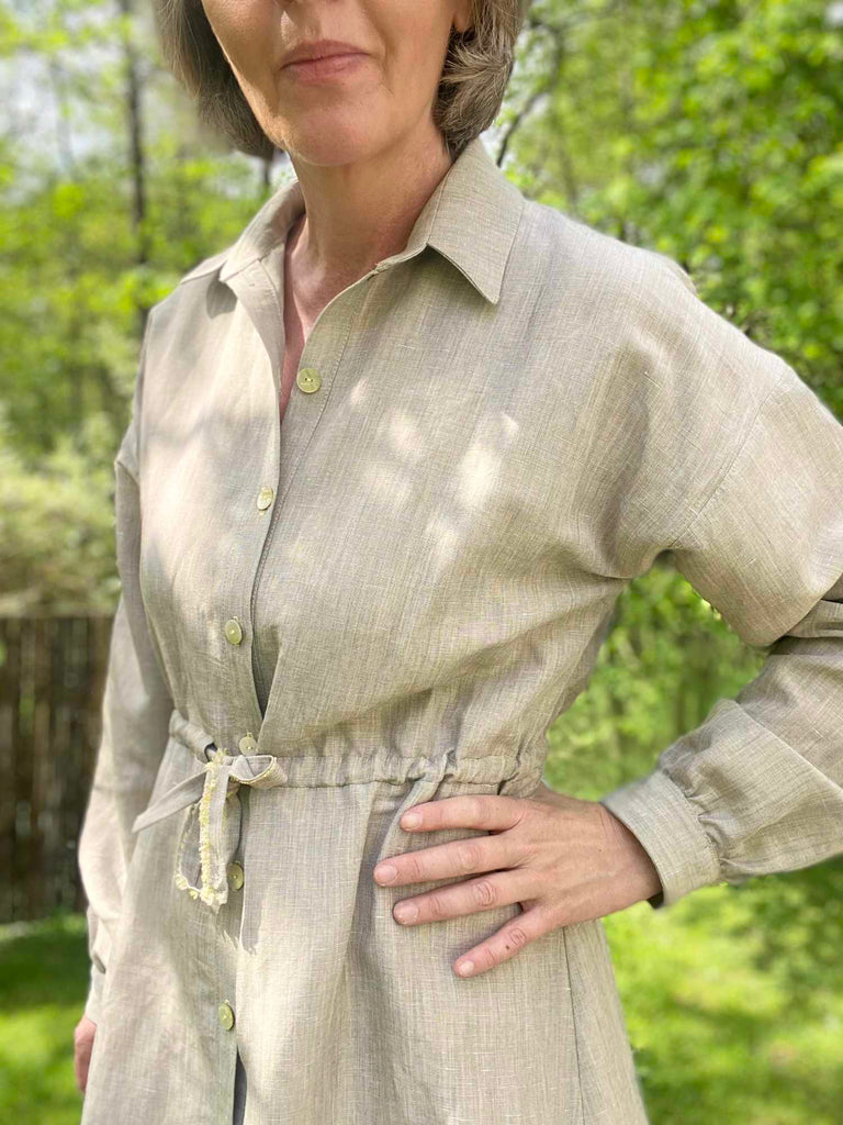 Lesrobesdesimone hat sich für den sommerlichen Farbton "Vanilla Icecream" entschieden und sich daraus das Hemdblusenkleid 'Lou' von Bara Studio genäht.