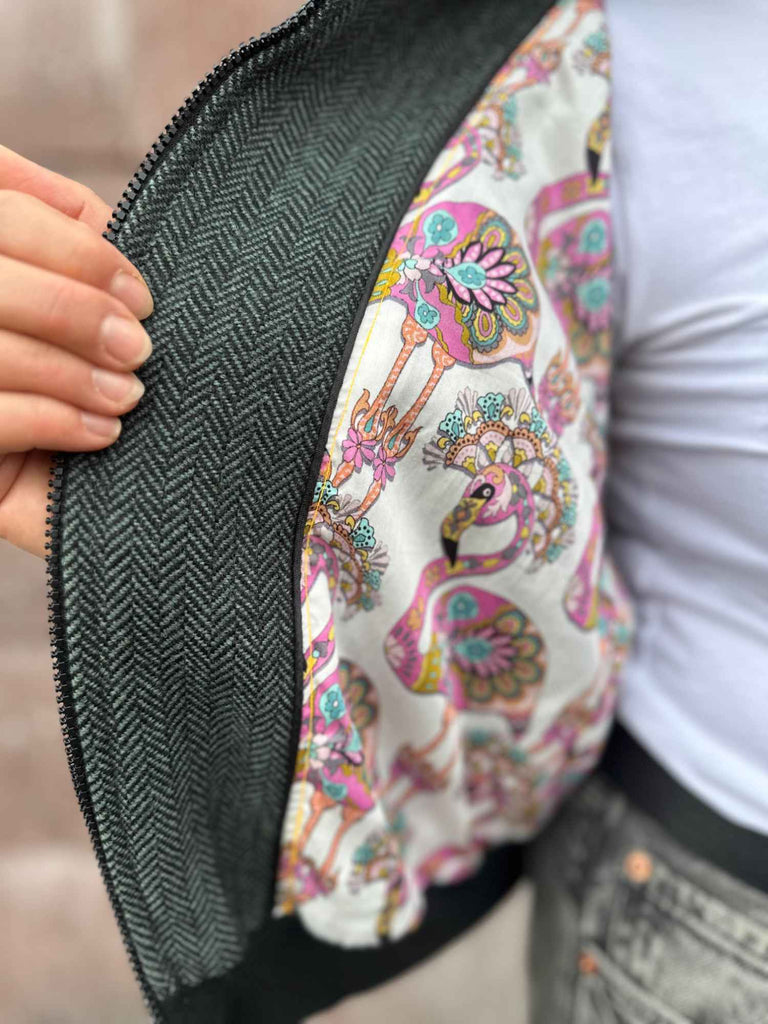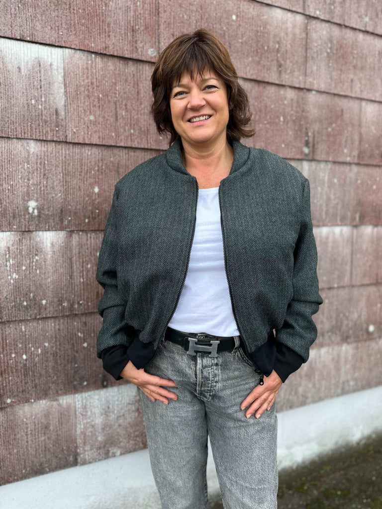 Steffi hat sich aus diesem zeitlosen Klassiker in edler Farbnuance eine sportlich schicke Bomberjacke nach dem Schnittmuster "Tiffany" von Schnittmuster Berlin genäht!