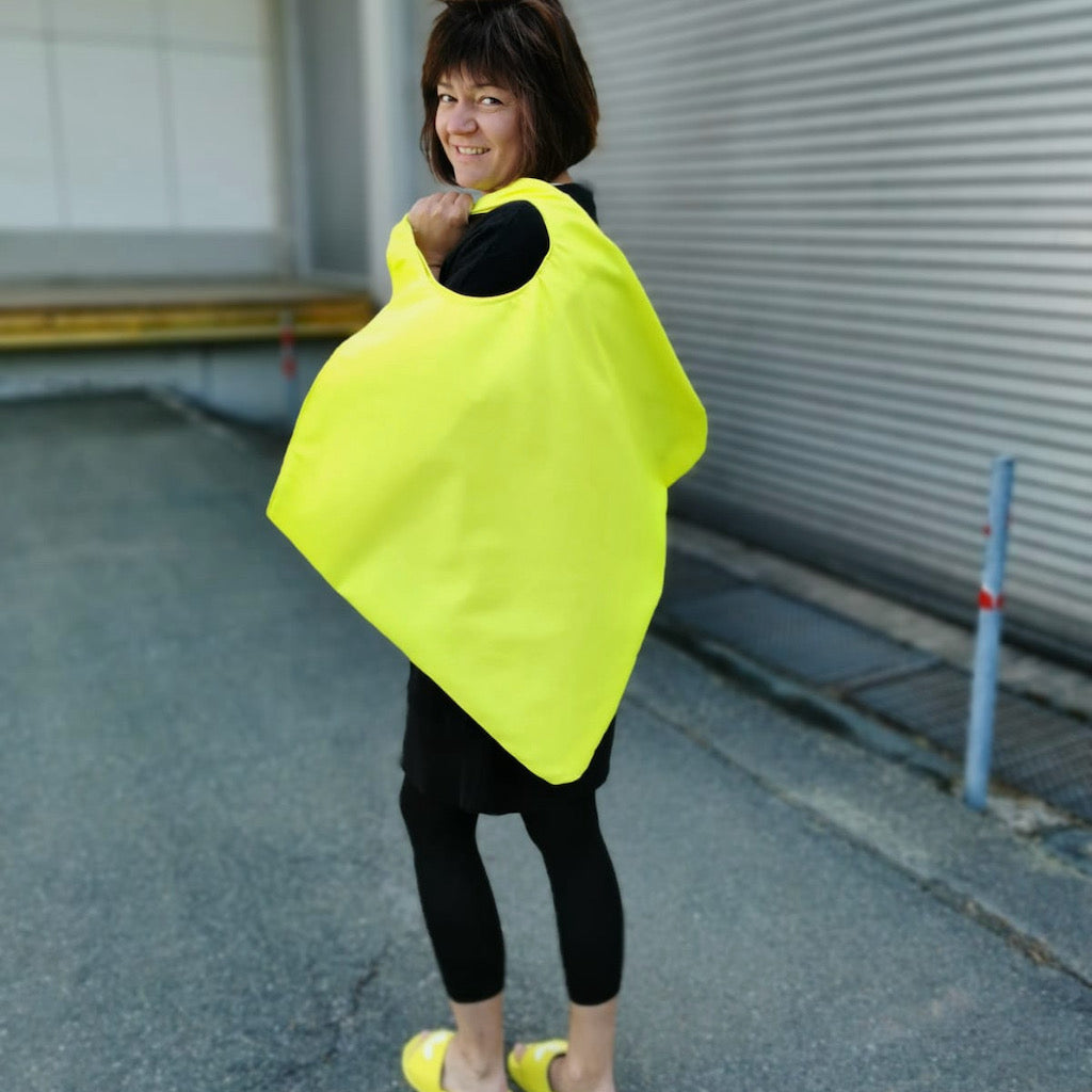 Neben dem absoluten WOW-Effekt bietet dieses langlebige Techno-Gewebe in knallgelb eine robuste Warenoberfläche und ist bestens geeignet für einzigartige coole Taschen und Rucksäcke, wie der XXL Shopper bei dem sich Steffi vom #SHO!pper von @einfach_sho inspirieren ließ!