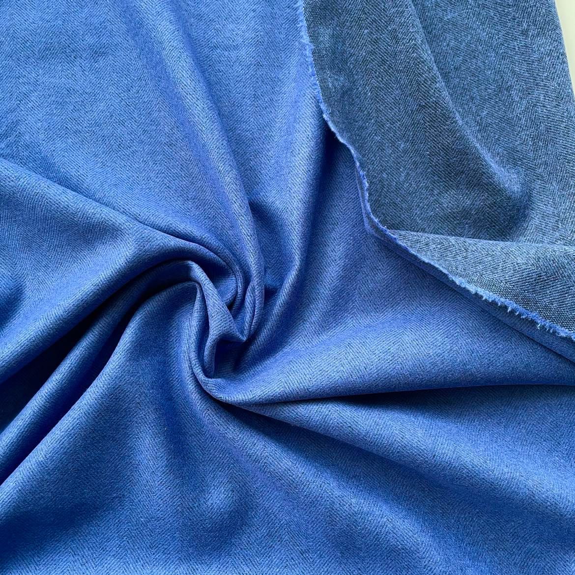 Der fluffig weiche Abseitenfischgrat mit traumhaft fließendem Fall ist beidseitig verwendbar! Die stimmige Farbkombi aus sattem Blau mit dunkler Navy Abseite ist ein echter Hingucker und ein Winterkleid, Jacke, Hose, Blazer oder leichter Wintermantel das IT-Piece für die kühle Zeit! Extravagant, edel und hochwertig in vielen tollen Farben!