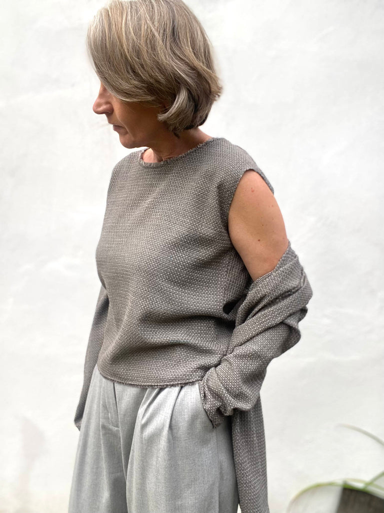 Lesrobesdesimone hat genäht wie eine Weltmeisterin! Gleich vier wunderschöne Kleidungsstücke hat sie sich aus diesem feinen Stöffchen in der Farbe 'Beige' gezaubert! Das Twinset 'Faye_B' von B-Patterns passt super zum 'Tulip Skirt' von The Assembly Line! Aber auch mit einer Hose lässt es sich super kombinieren! Außerdem hat sie sich noch das Blusenshirt 'Kim_B', ebenfalls von B-Patterns, geschneidert