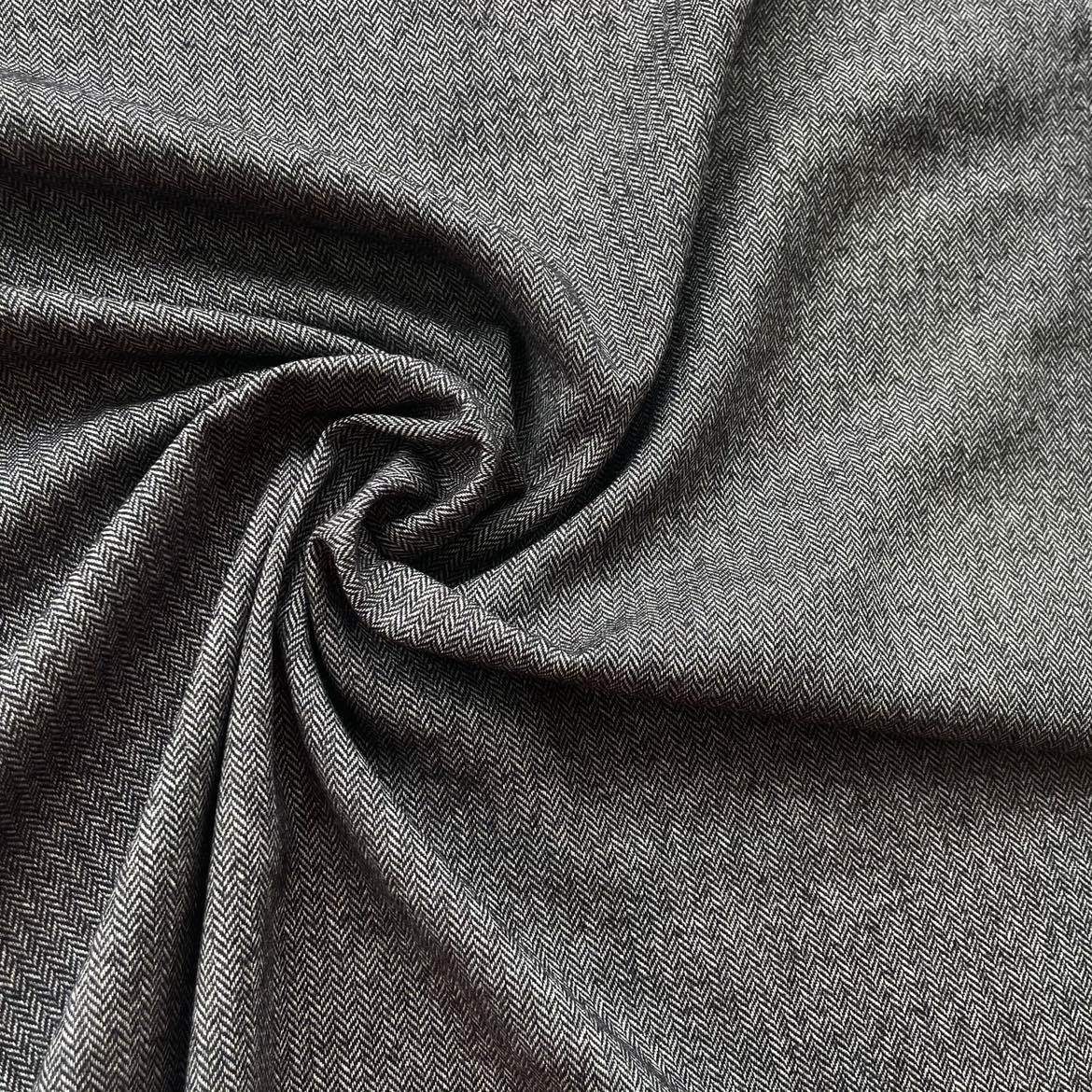 Sehr hochwertige flanellige Fischgratstruktur mit natürlichem Look und wunderschöner weicher Haptik und edlem Lüster! Die klassische Zweifarbigkeit Dunkelgrau und Écru wirkt edel und smart und ist traumhaft zu Kombinieren!