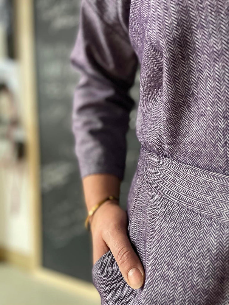 Sehr hochwertige flanellige Fischgratstruktur mit natürlichem Look und wunderschöner weicher Haptik und edlem Lüster! Die modische Zweifarbigkeit Lila und Écru wirkt stylisch und smart und ist traumhaft zu Kombinieren. Der Fischgrat ist 0,6 cm breit.