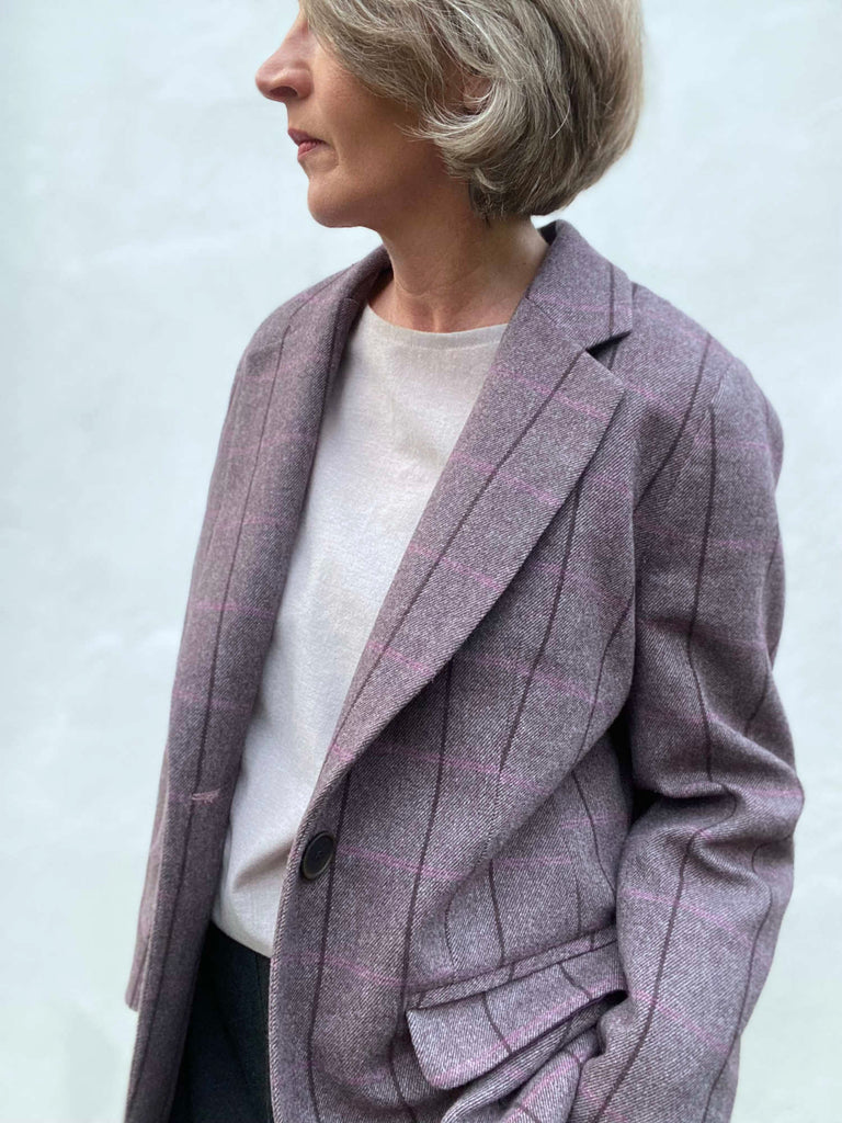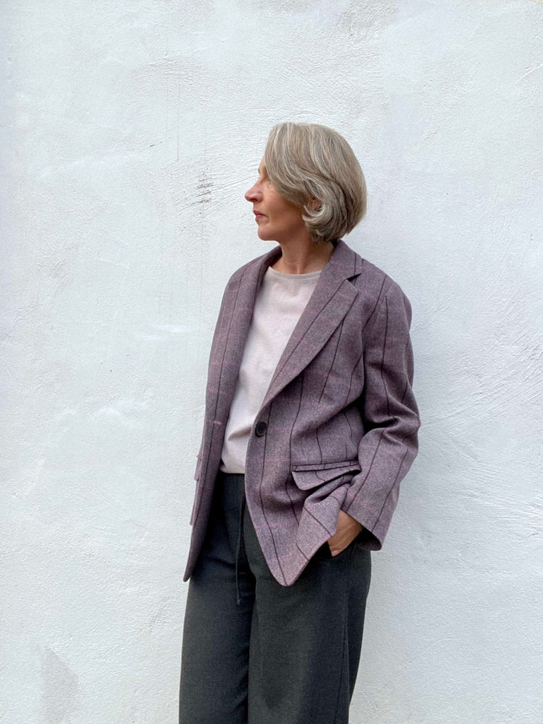 Lerobesdesimone hat sich aus unserem Windocheck in der Farbe 'Winterpflaume' den Blazer 'Jette' von Clarasstoffe und Makesaschnittdesign genäht!