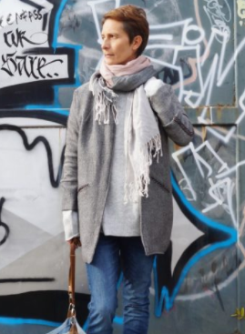 Edel sportiver Tweed mit hohem Schurwoll-Anteil für schöne Winter-Jacken, Mäntel, Blazer, Röcke, Ponchos, Tuniken oder Schals. Meinanderesich zeigt eine wunderschöne Frau Ava daraus. Sportiver Schwarz/Weiss – Wolltweed in Twillbindung. Zeitlos, lässig ‘elegant’ und gut kombinierbar.