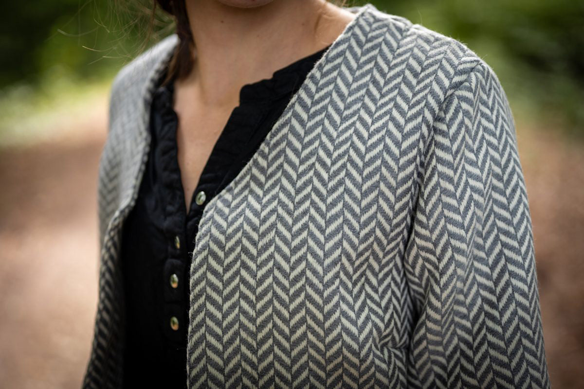 Claudia from Couture Velvet used our various Maxi Herringbone fabrics to create her Ovietta jacket!