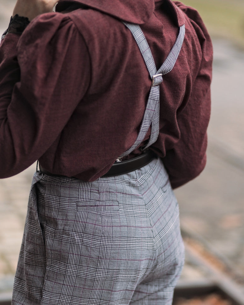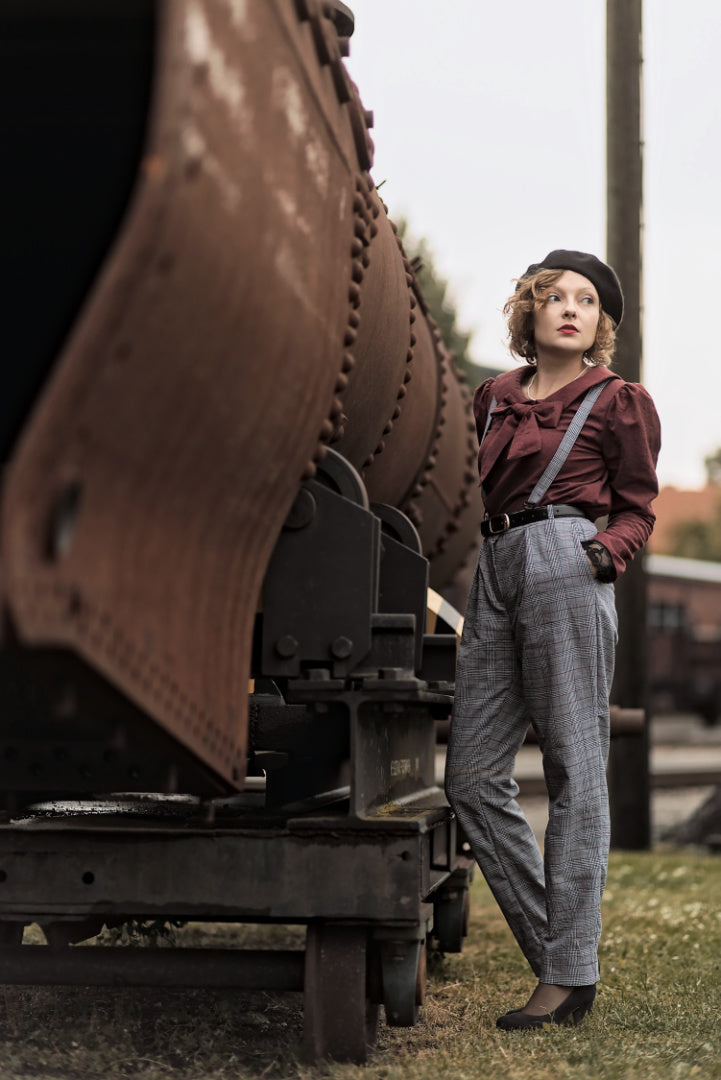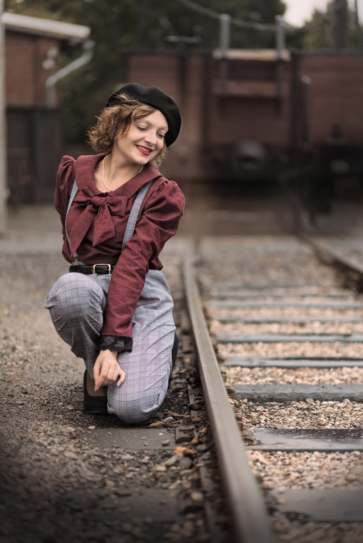 Vogelnaht enchants us once again with a sophisticated vintage-look outfit! She combined our 'Pomegranate' washwool with our 'Scott' glen check ! These two timeless classics not only match beautifully in color, but also complement each other perfectly in pattern and feel!
