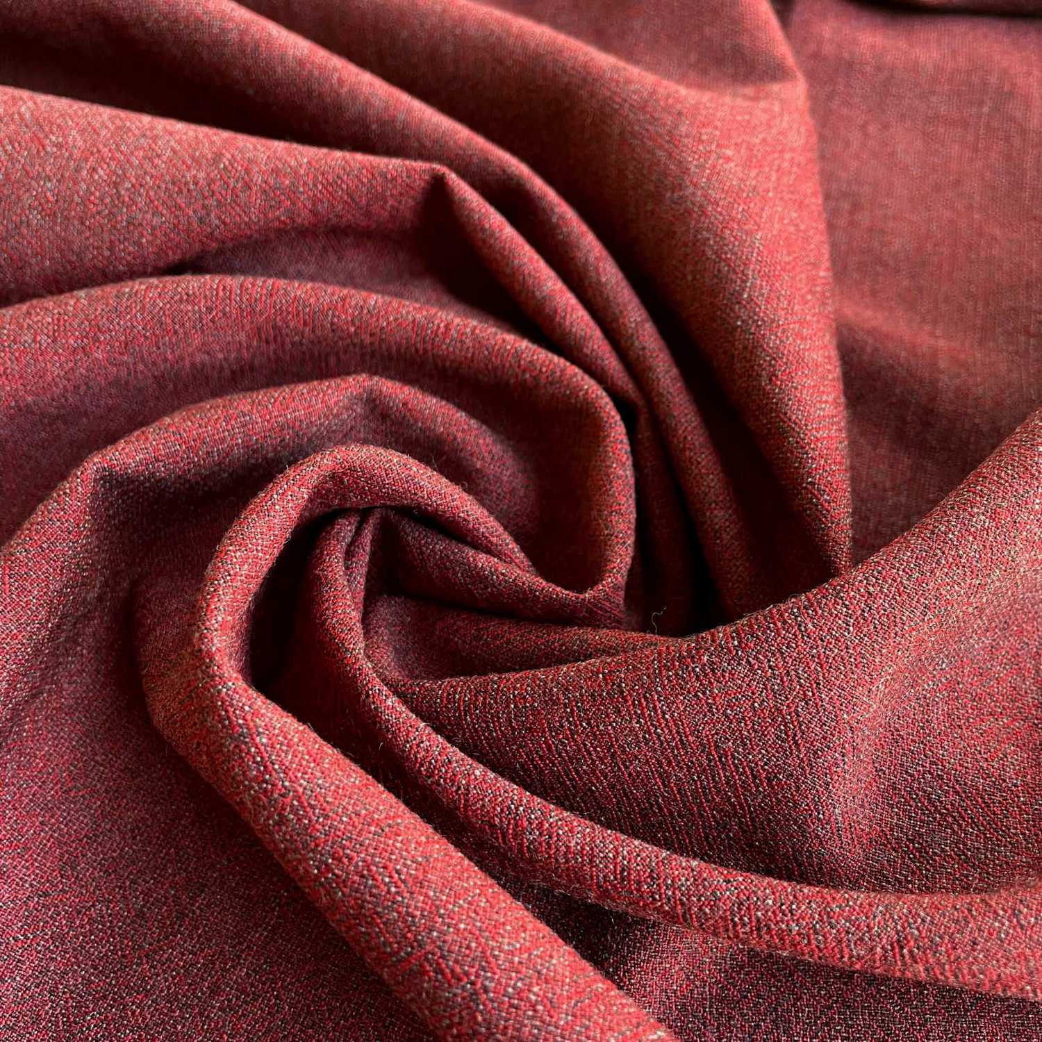 This lightweight and fine merino wool fabric impresses with its soft, flattering drape and feels wonderfully comfortable against the skin. The surface has a crepey and deliberately restless, porous appearance with the character of a crepe caid in a wonderfully elegant, vibrant shade of red!