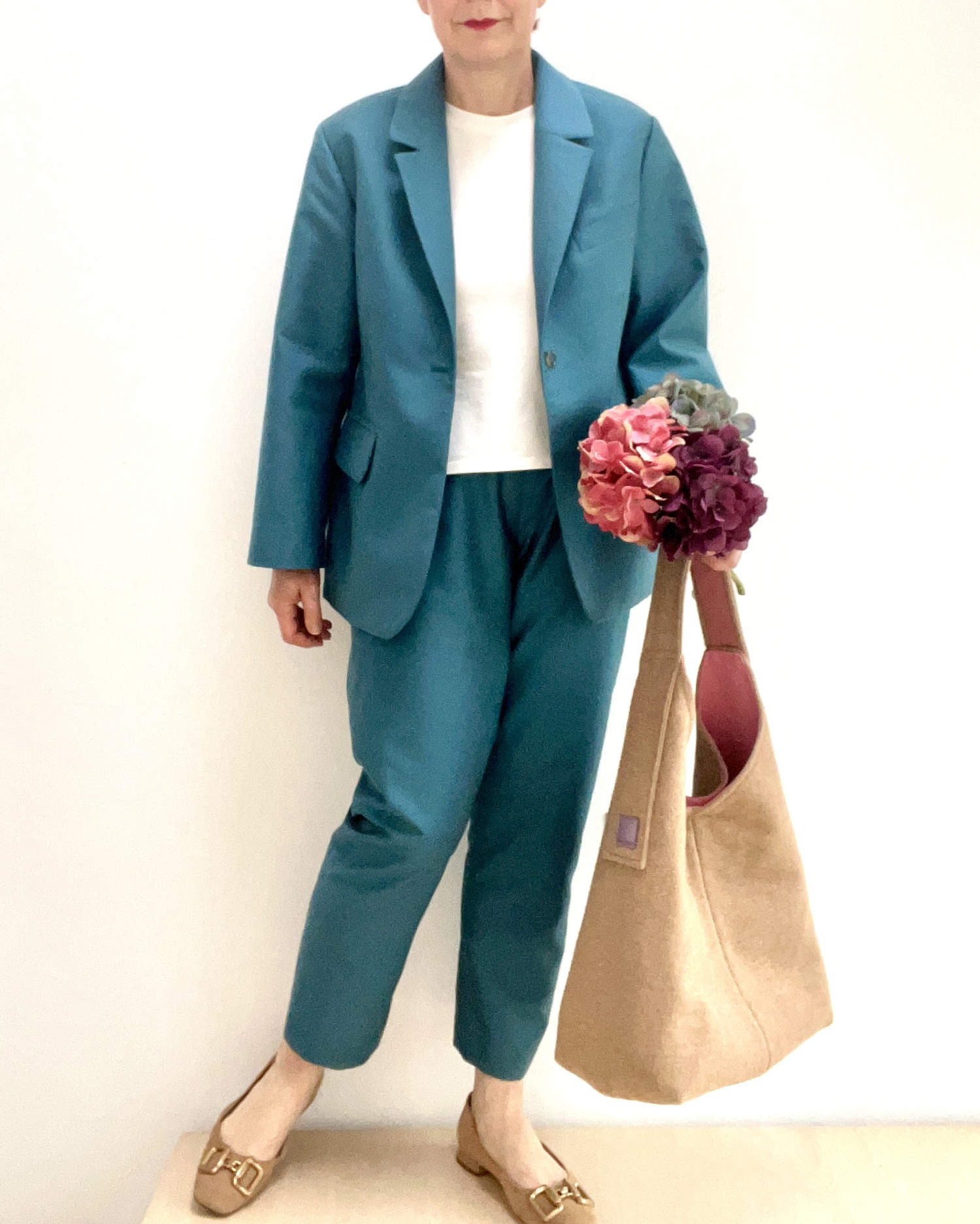 Unasewing2021 hat sich aus der sommerlichen Ware einen schicken, klassischen Hosenanzug geschneidert und kombiniert diesen wieder ausgezeichnet! Das Schnittmuster 'Joni' für den Blazer findet ihr bei Fibremood und die 'Sidewinderpants' ist von von the Sewing Revival.