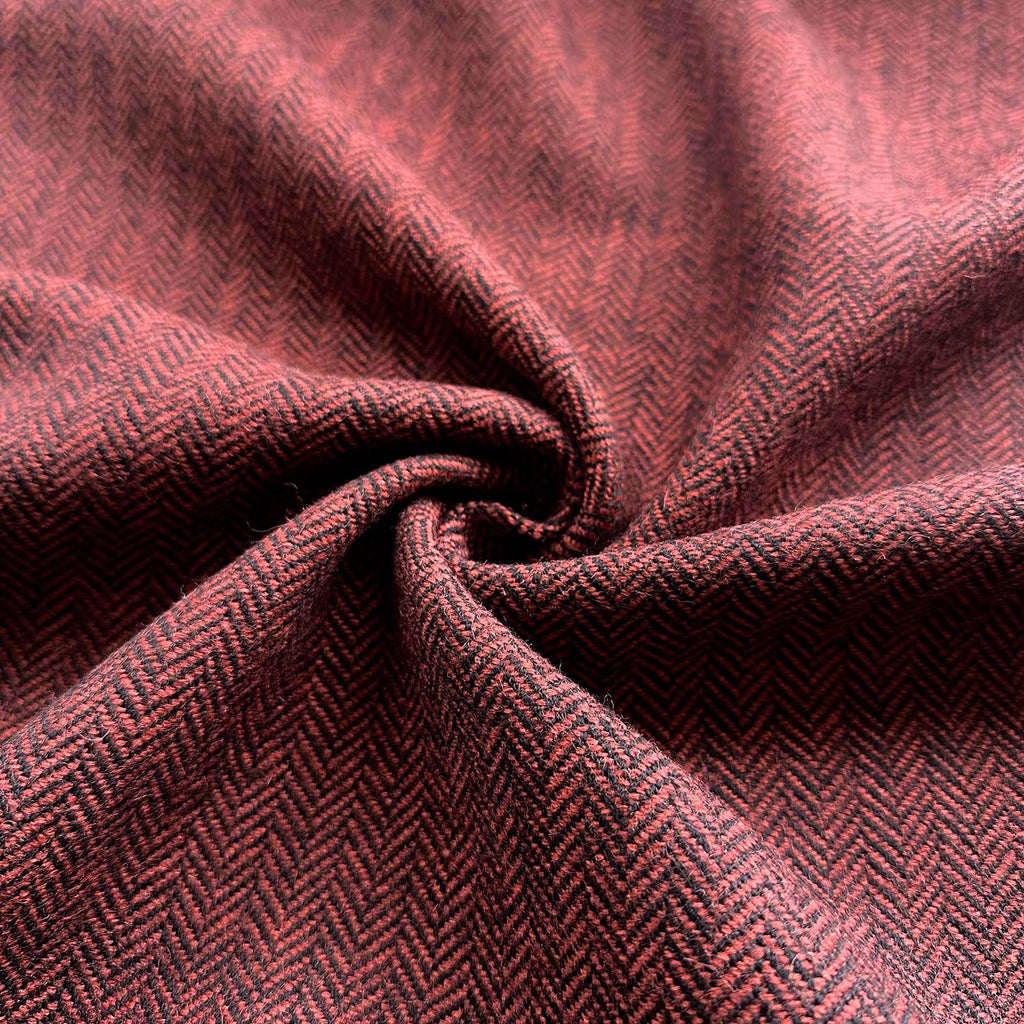 Fischgrat, der Tweed-Klassiker in Schwarz/Rostrot für Mäntel, Jacken, Blazer, Caps, Hüte, Ponchos oder Tuniken.