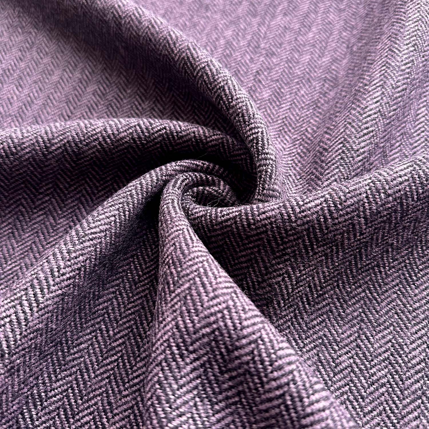 Fischgrat, der Tweed-Klassiker in Schwarz/Flieder für Mäntel, Jacken, Blazer, Caps, Hüte, Ponchos oder Tuniken.